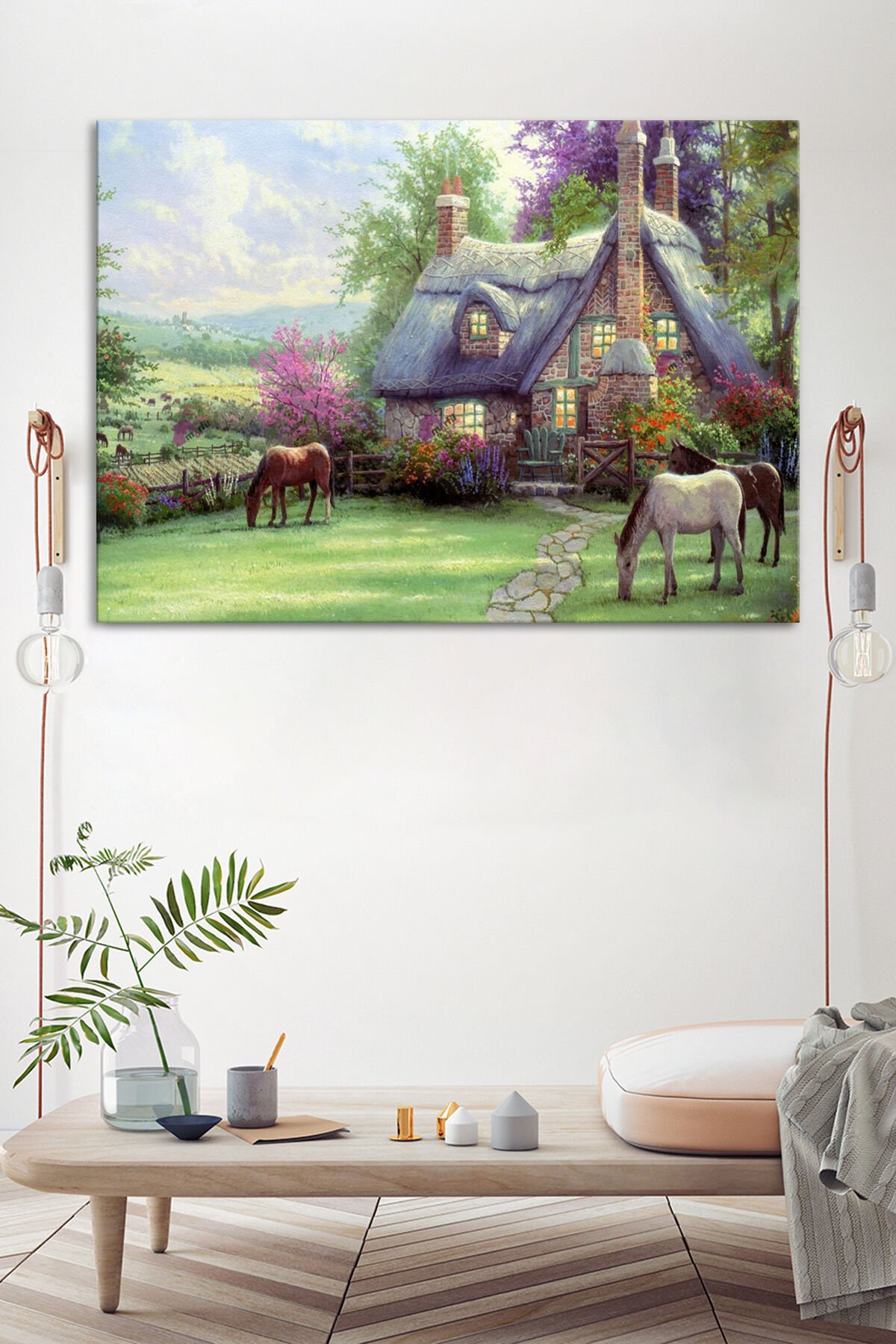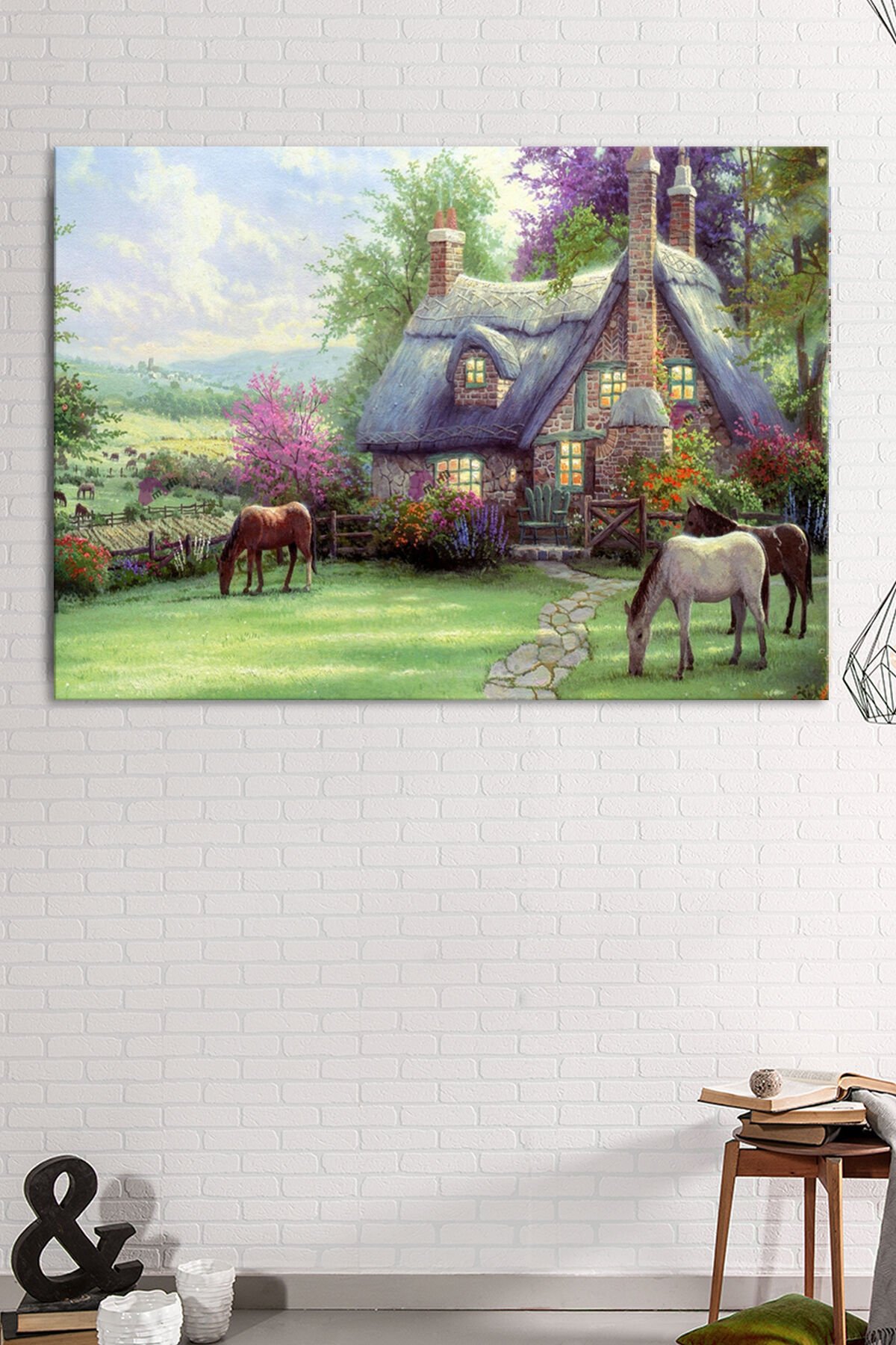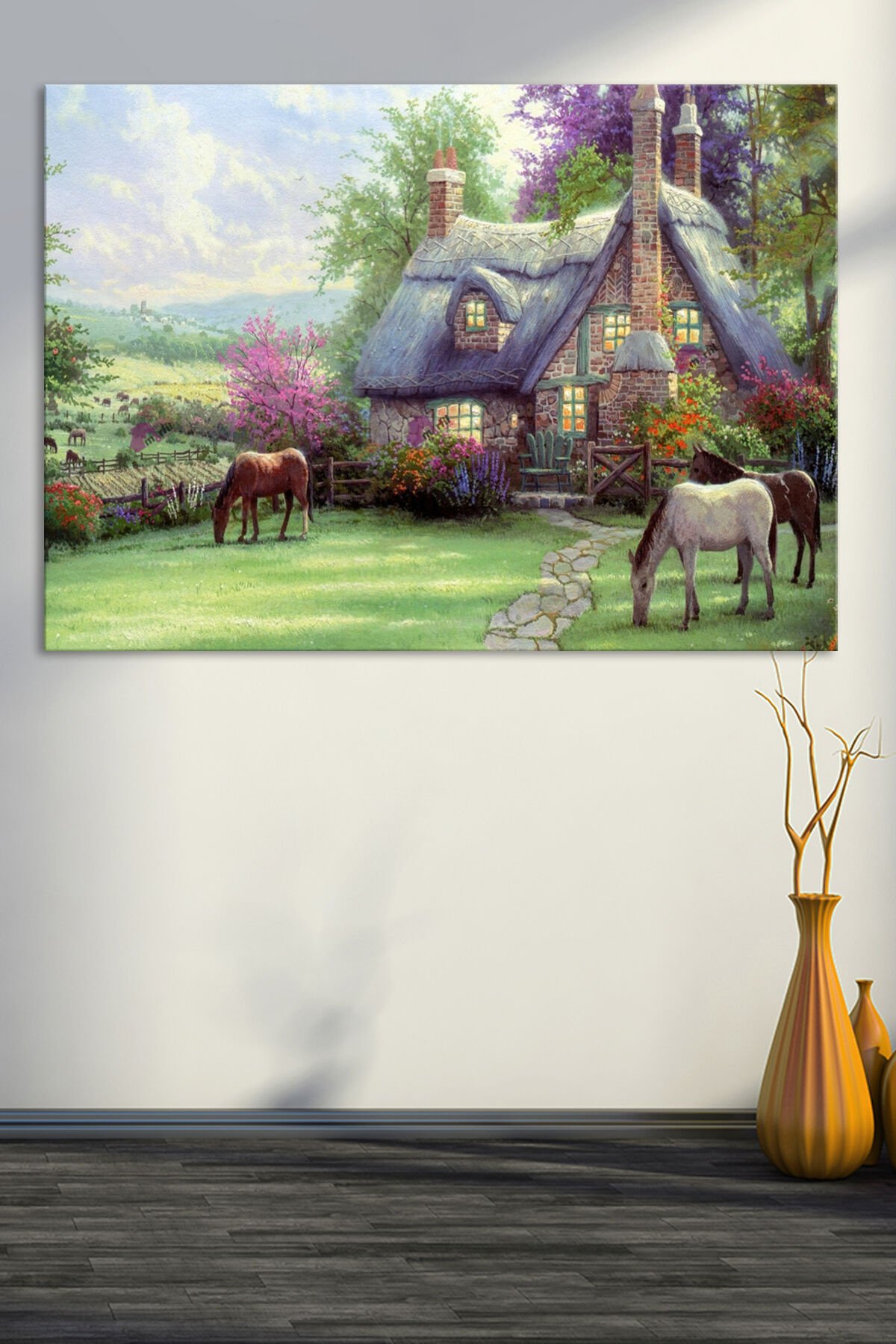 Köy Yaşam Çiftlik Doğa Manzara KanvasTablo (7 Farklı Ölçü)