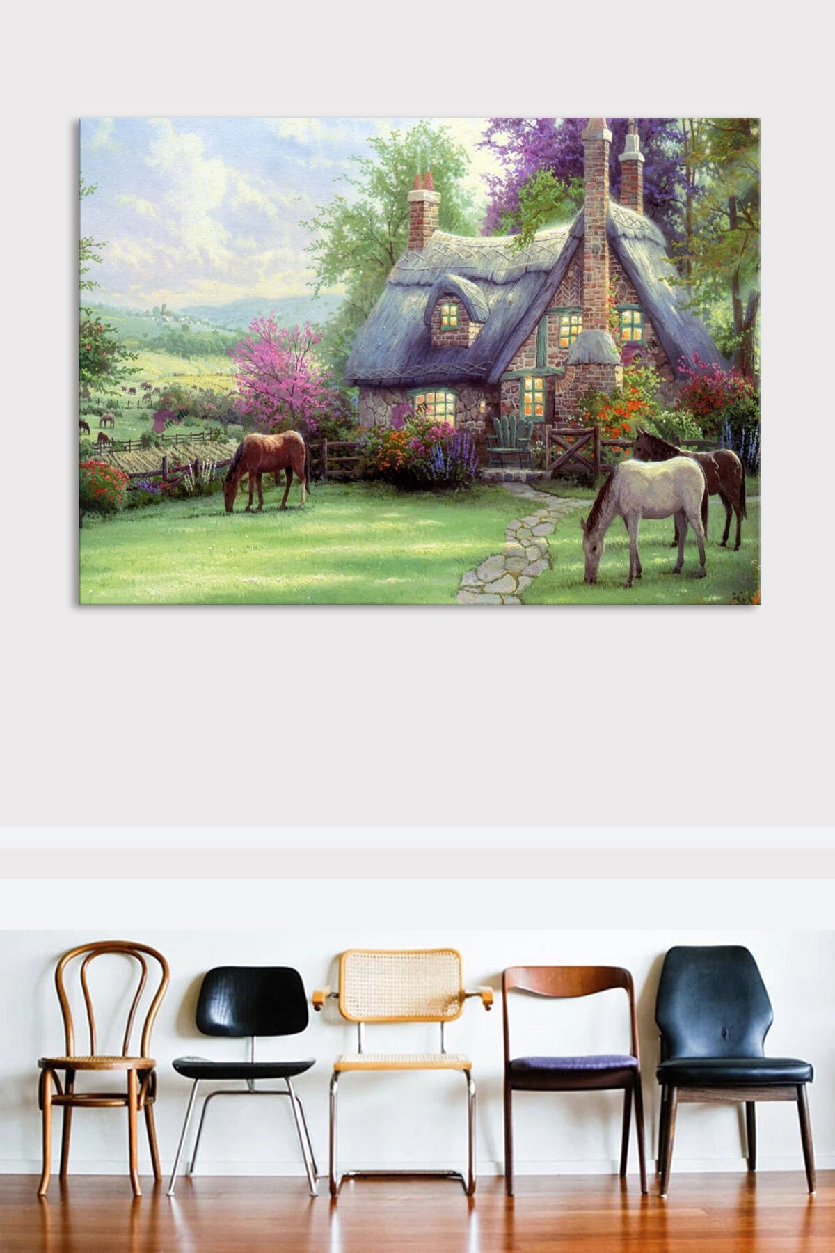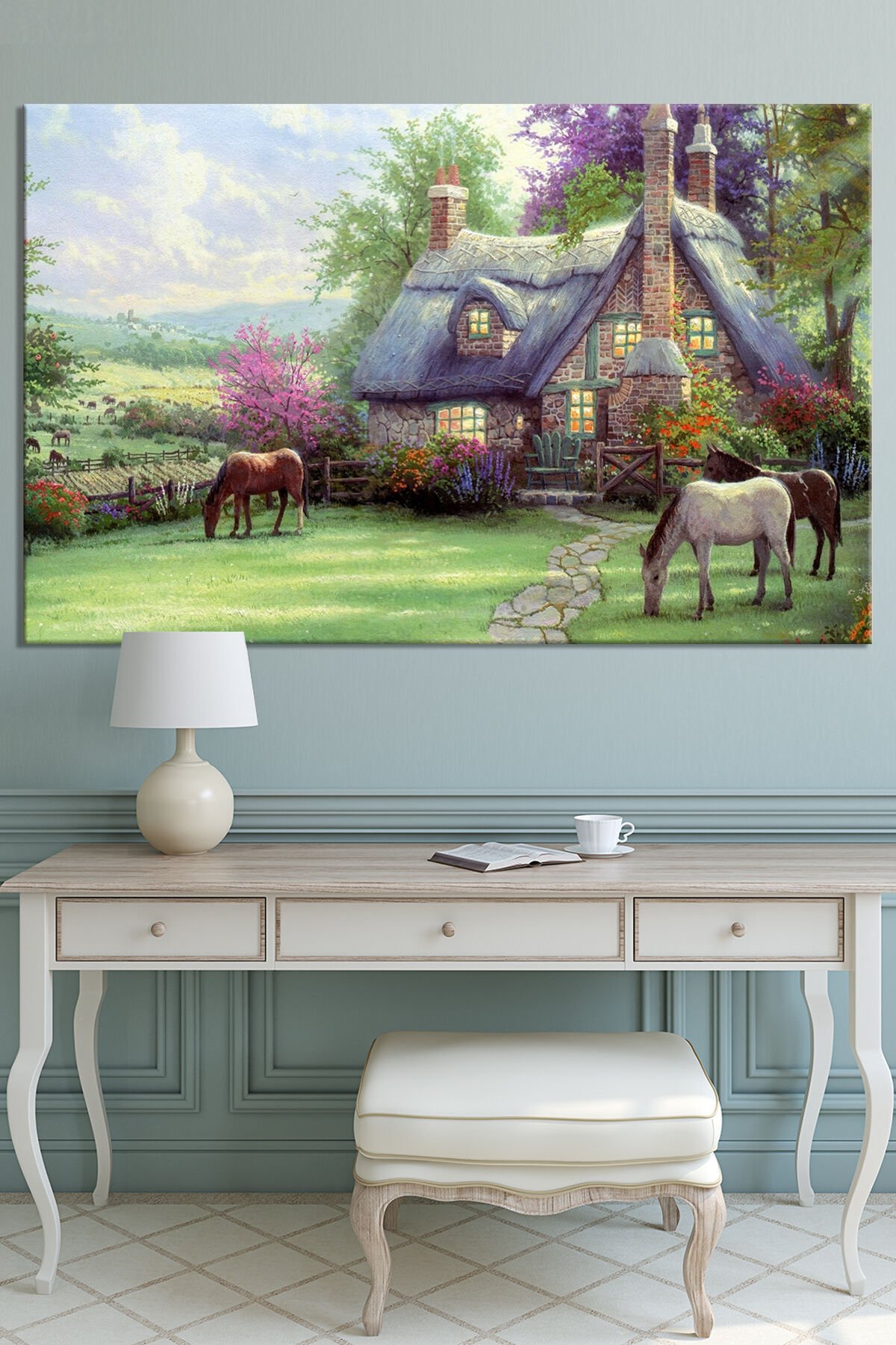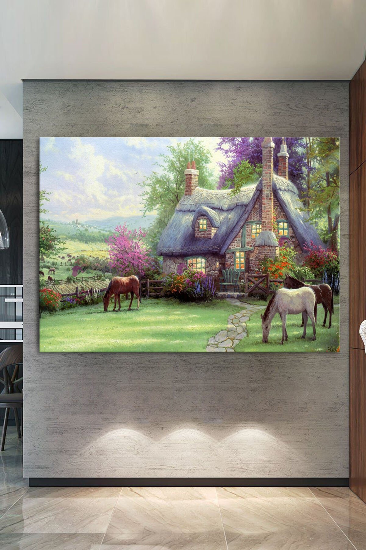 Köy Yaşam Çiftlik Doğa Manzara KanvasTablo (7 Farklı Ölçü)