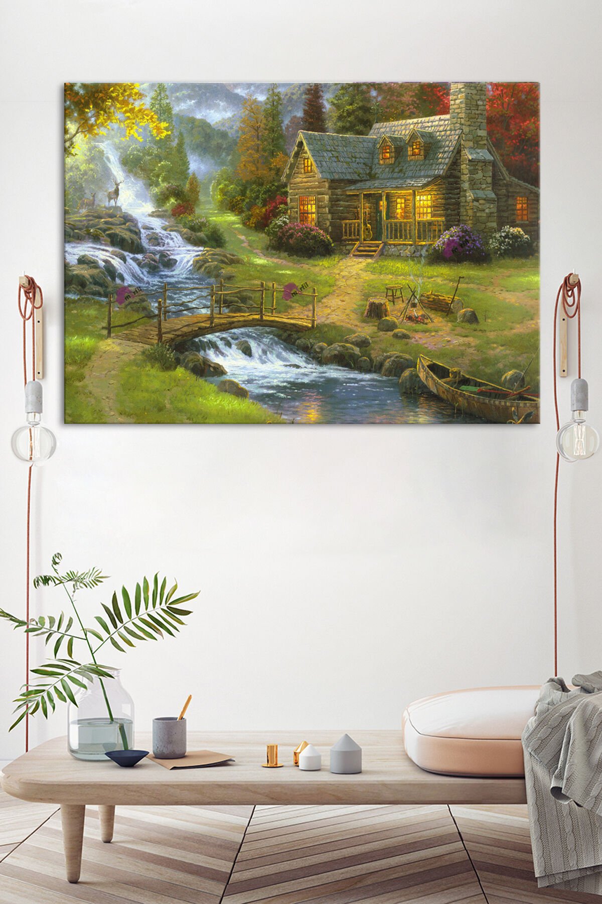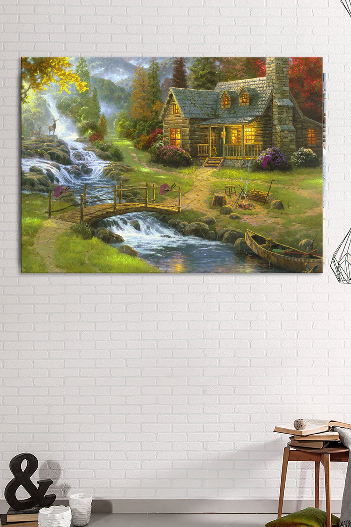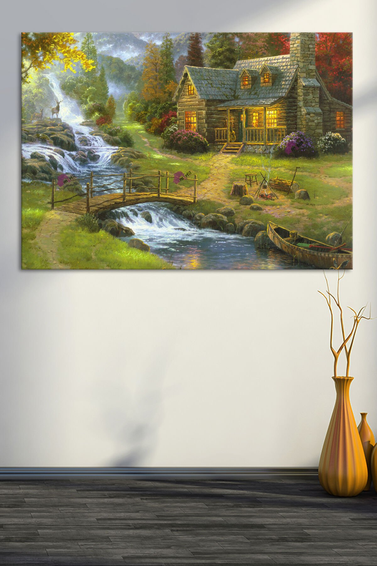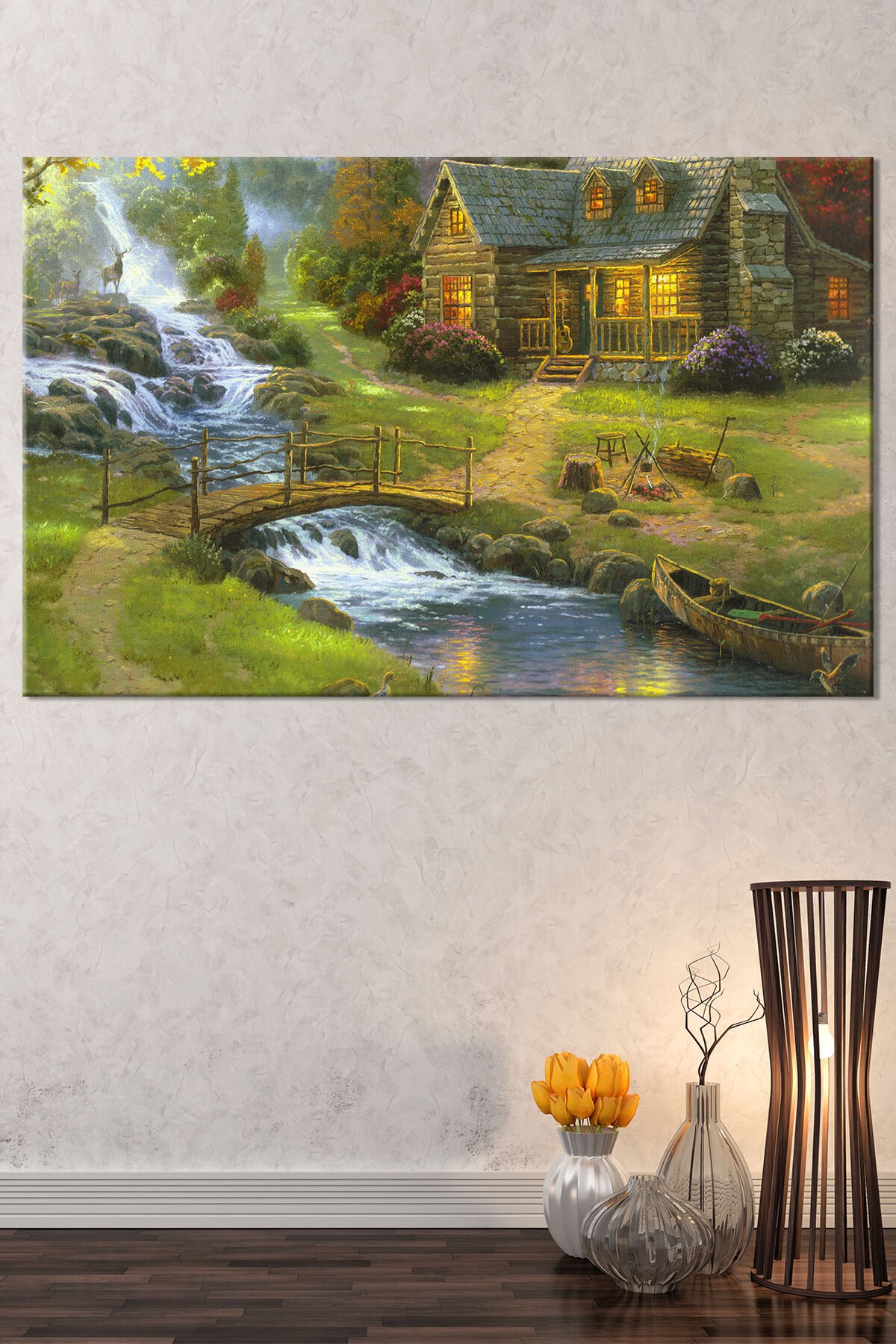 Köy Yaşam Doğa Nehir Doğa Manzara KanvasTablo (7 Farklı Ölçü)