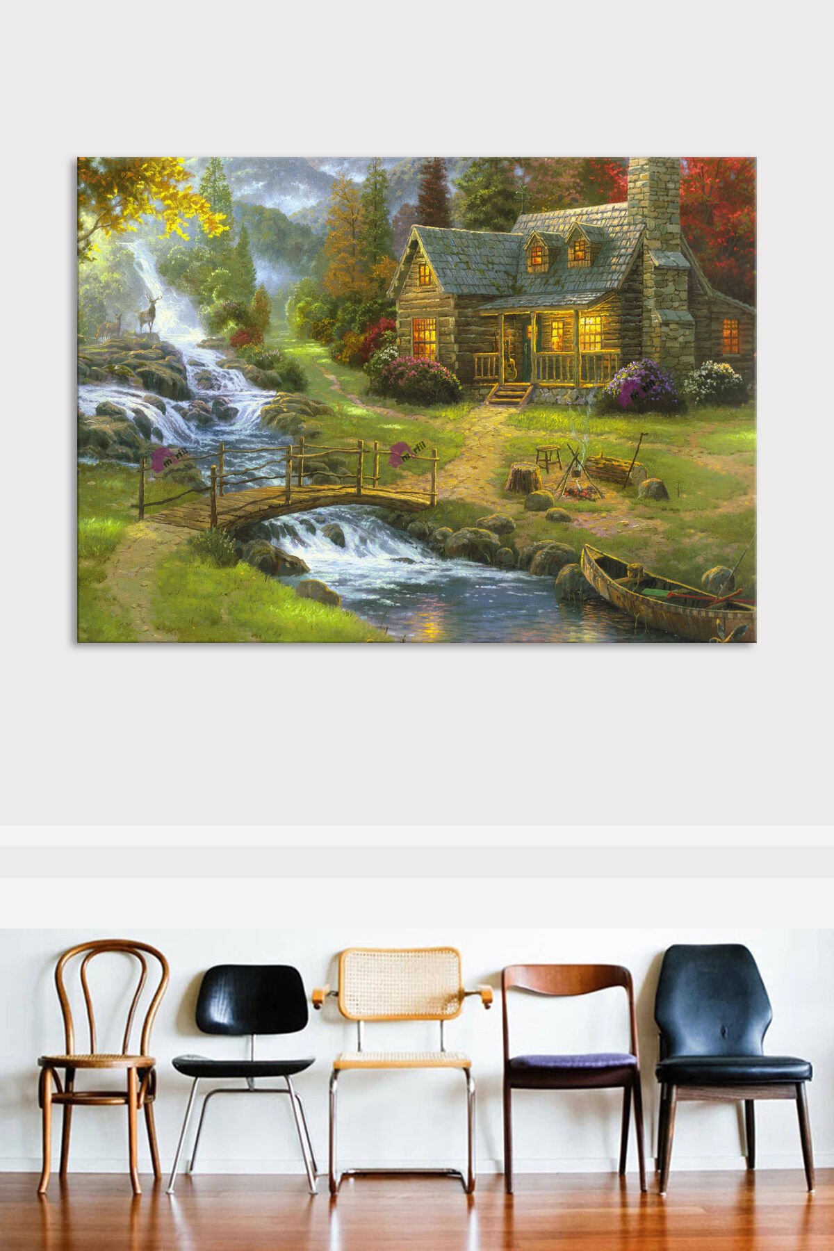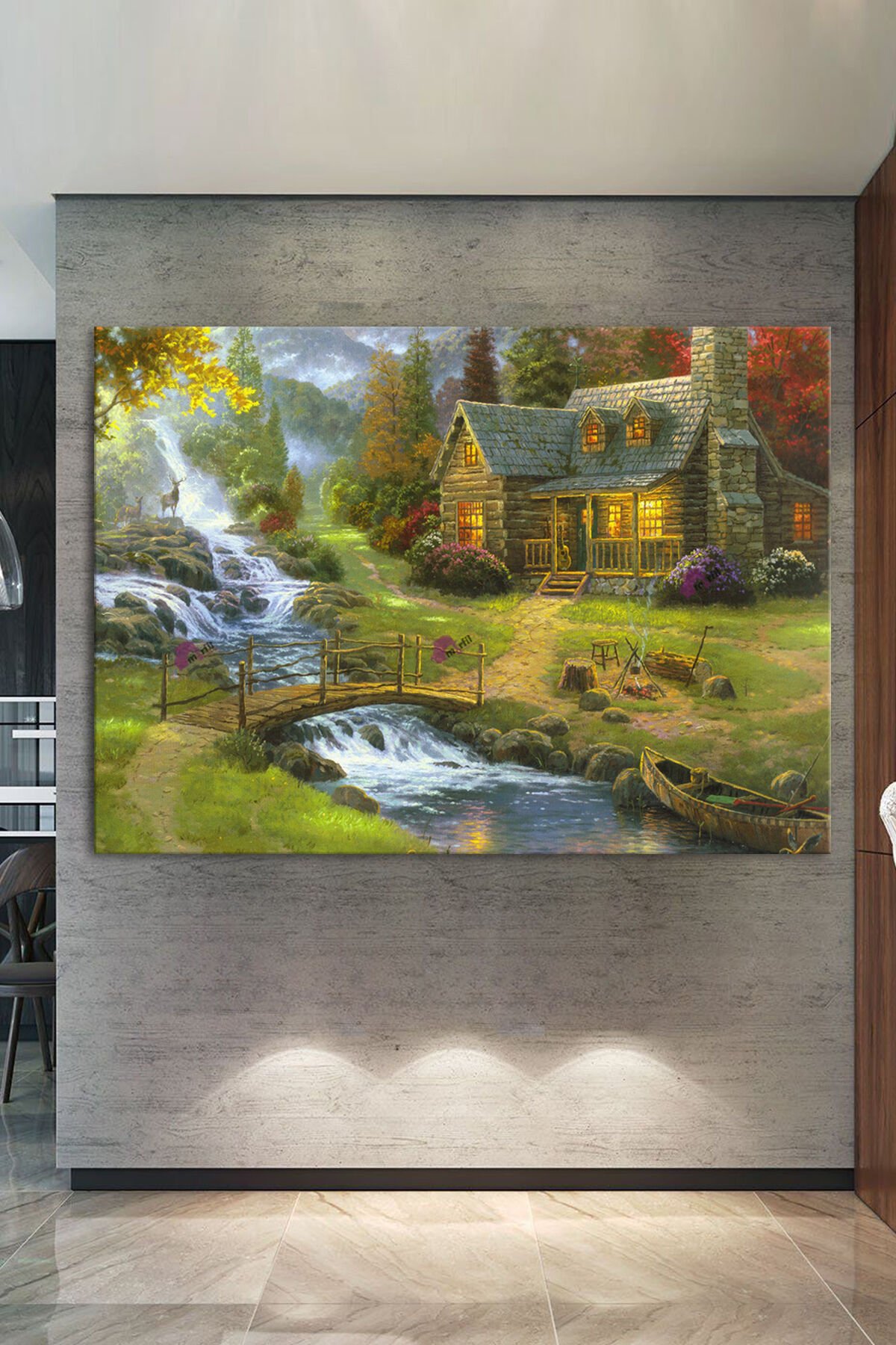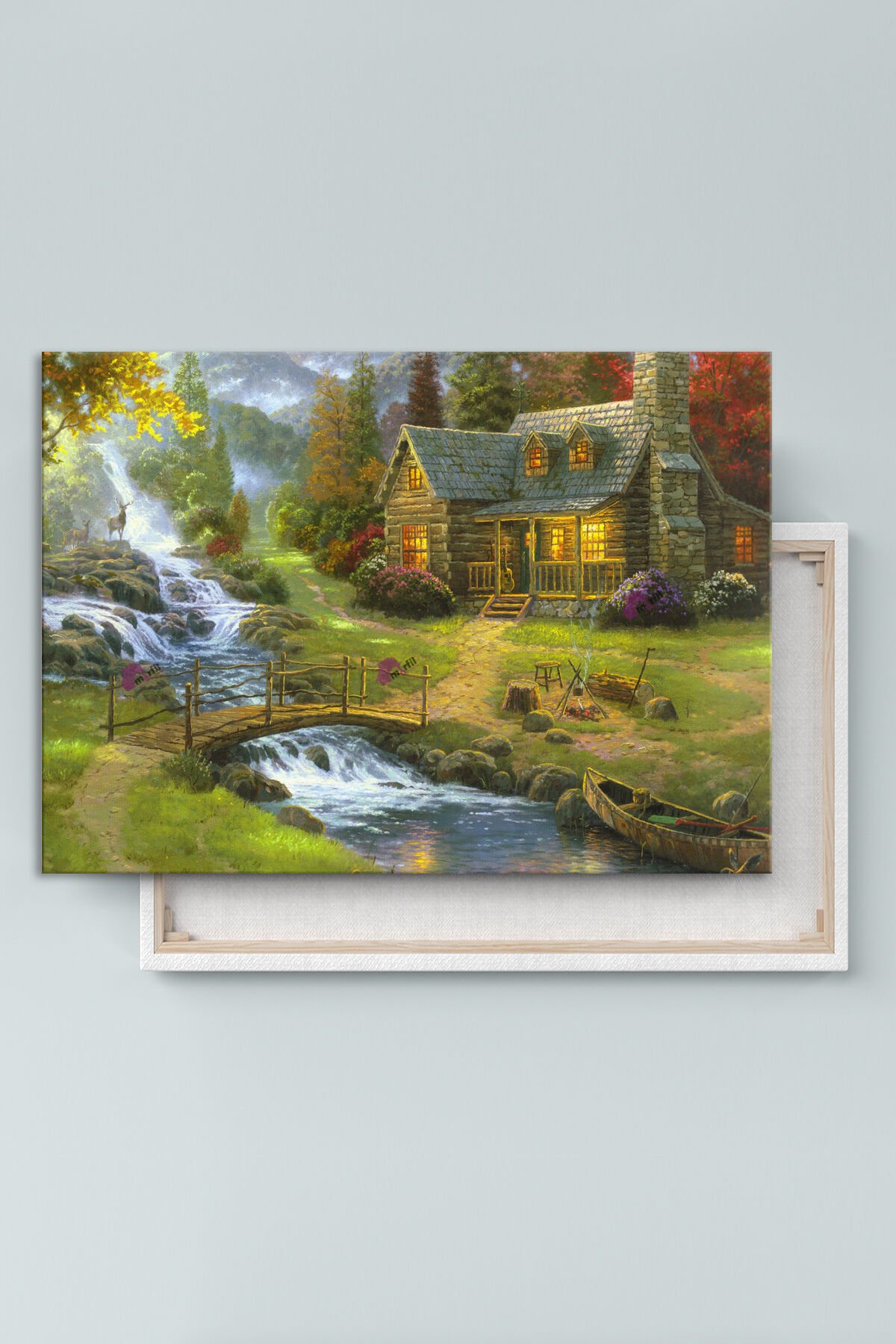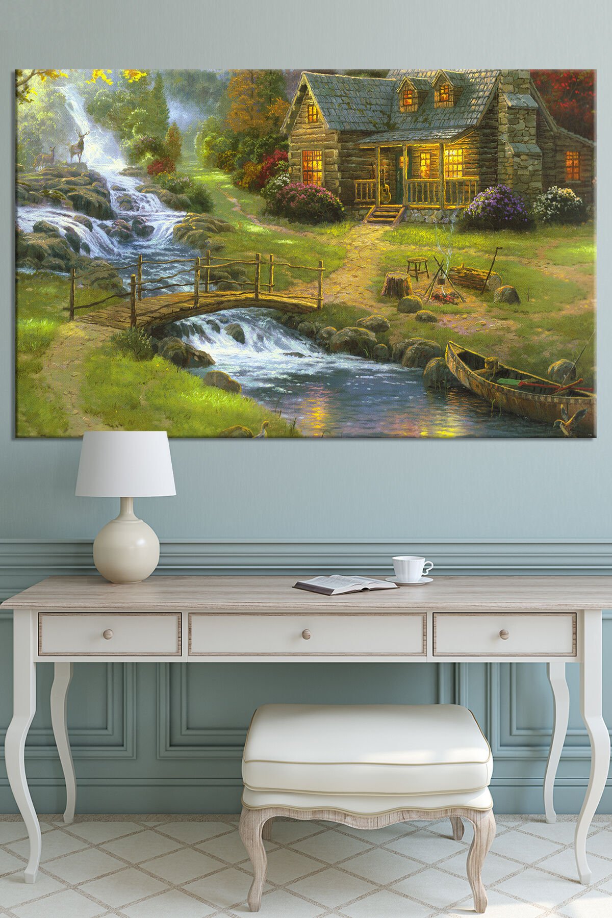 Köy Yaşam Doğa Nehir Doğa Manzara KanvasTablo (7 Farklı Ölçü)