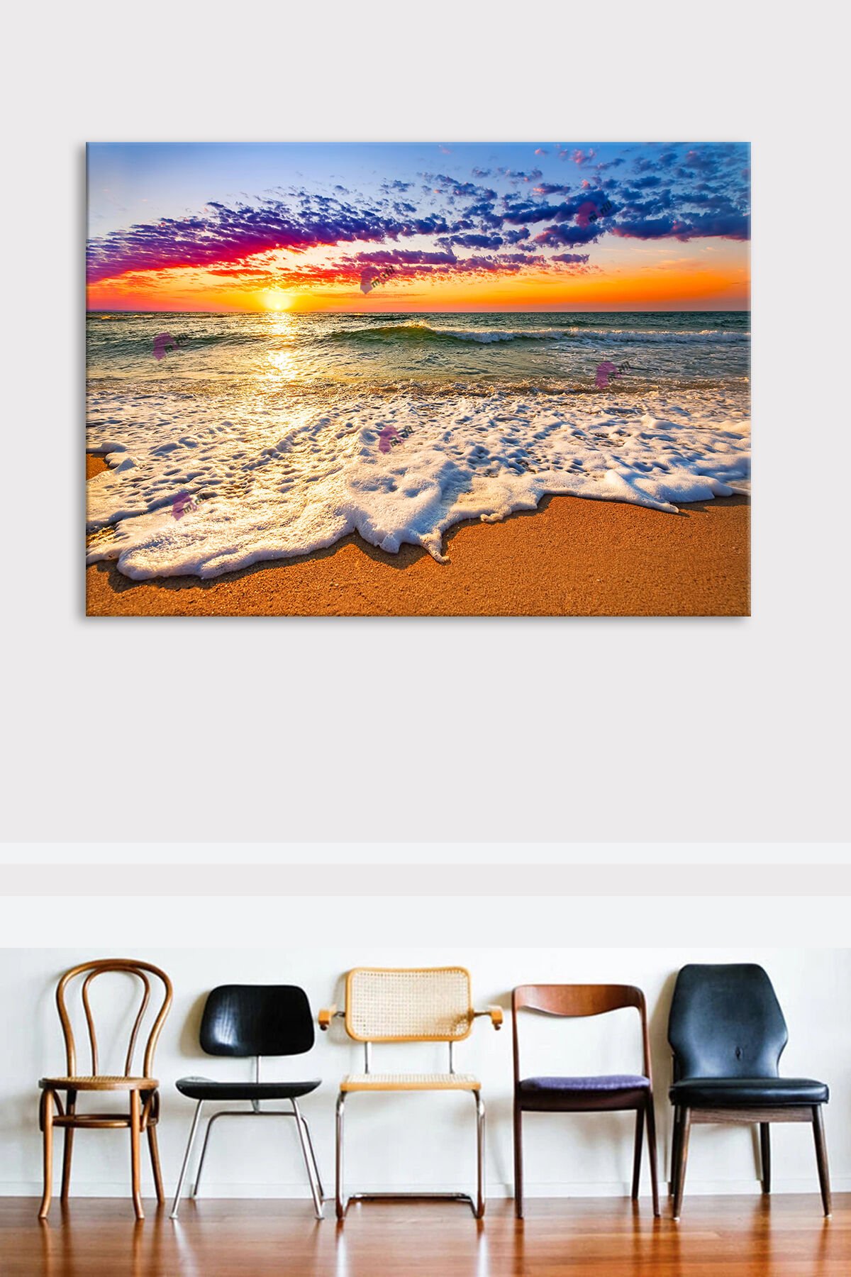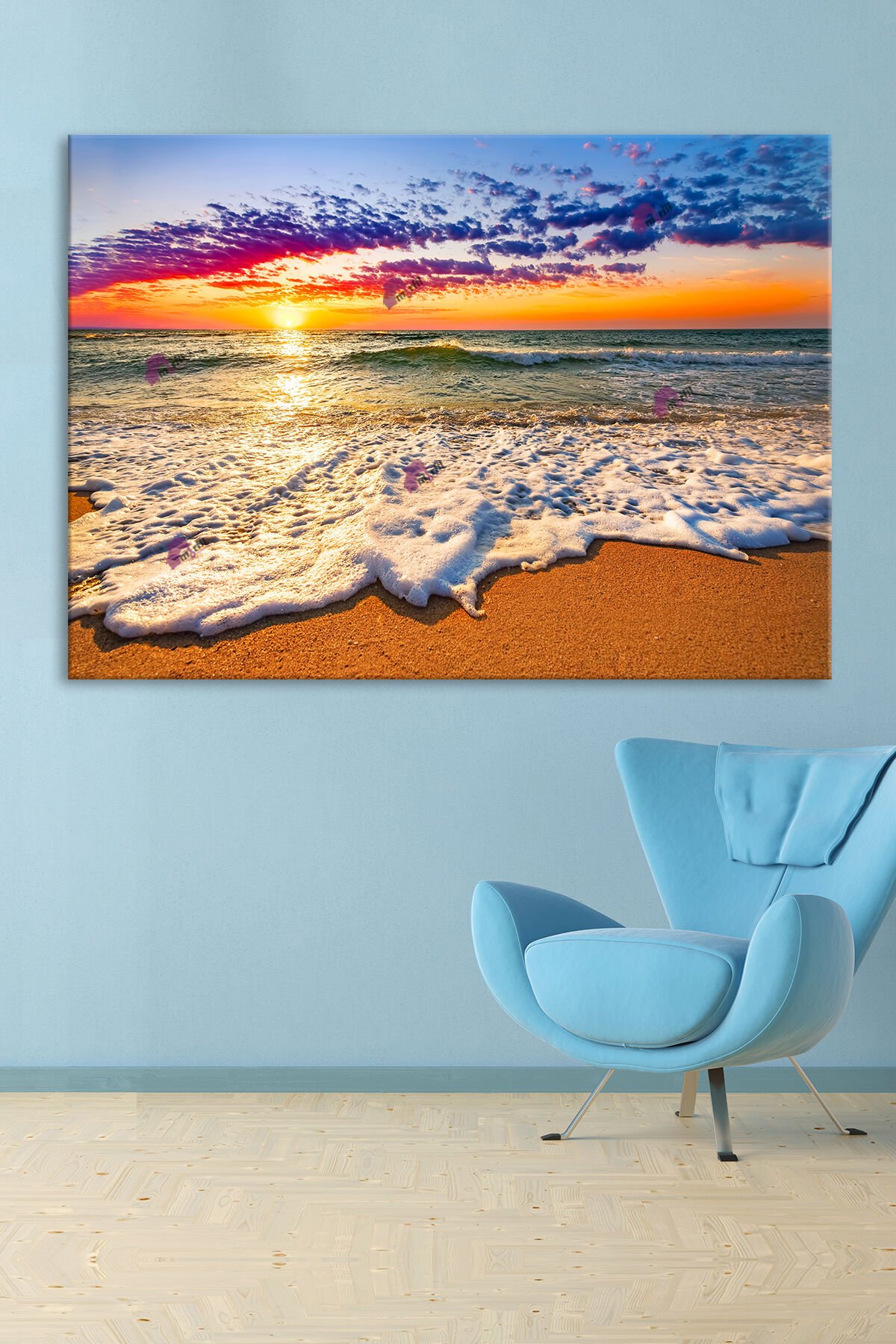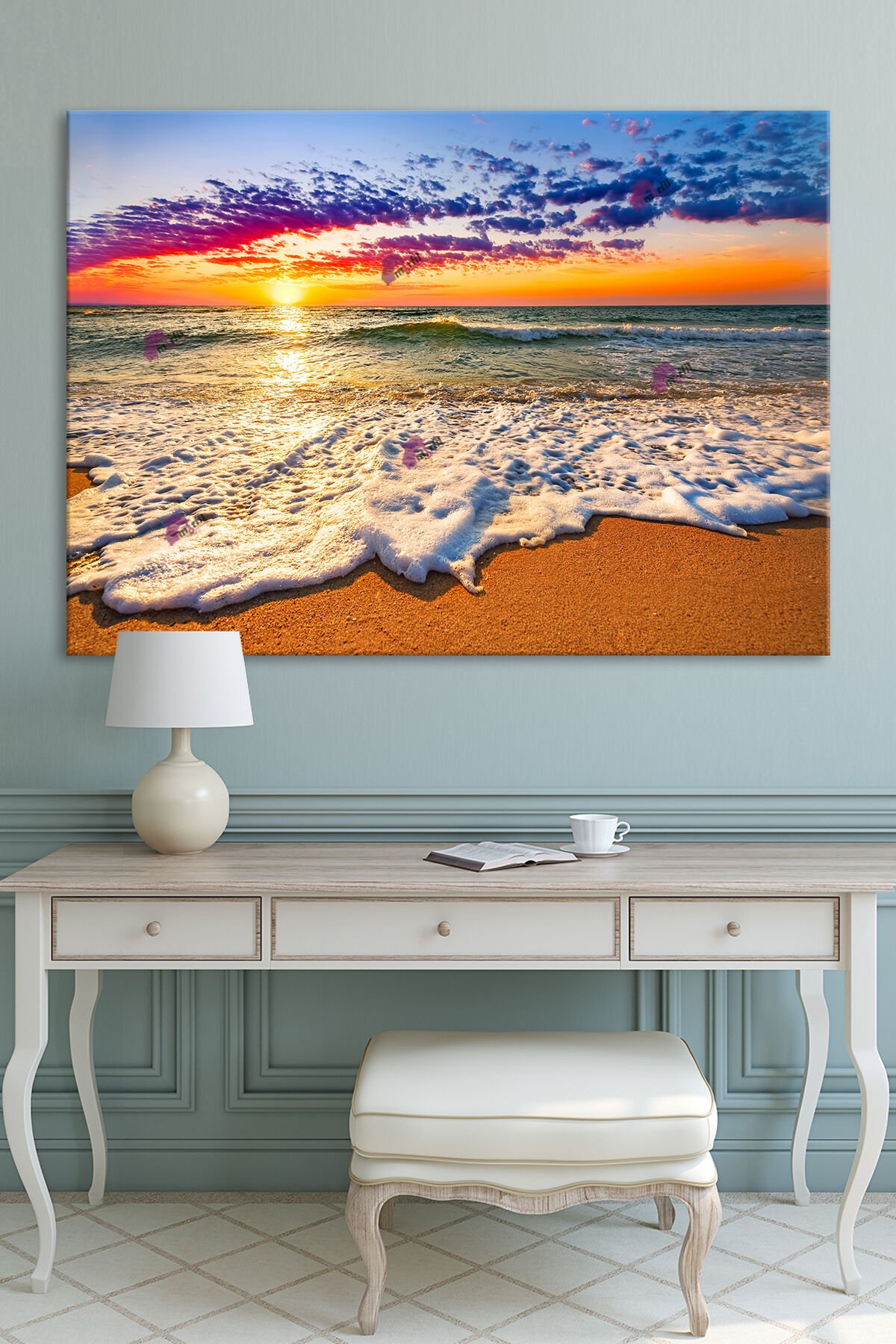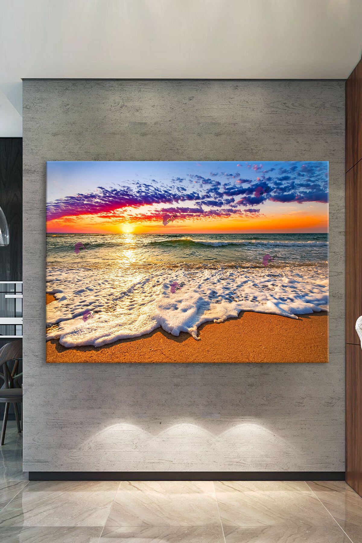 Kumsal Deniz Gün Batımı Manzara Modern Kanvas Tablo
