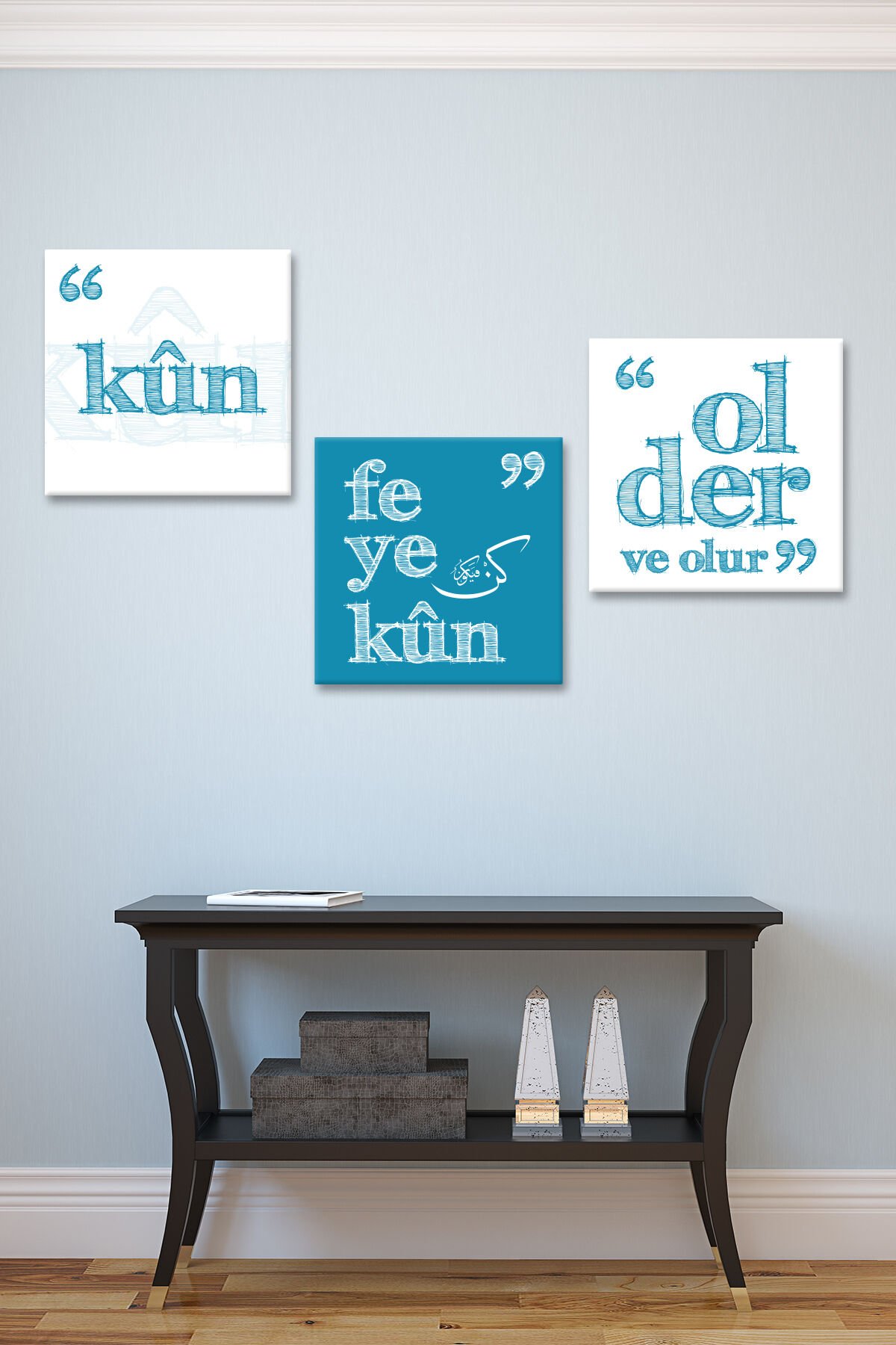 Kun Fe Yekun ''Ol der Ve Oluverir '' Ayeti Kerime İslami Hat Tablo (1 Aded Ölçüsü 3 Adedin fiyatıdır)