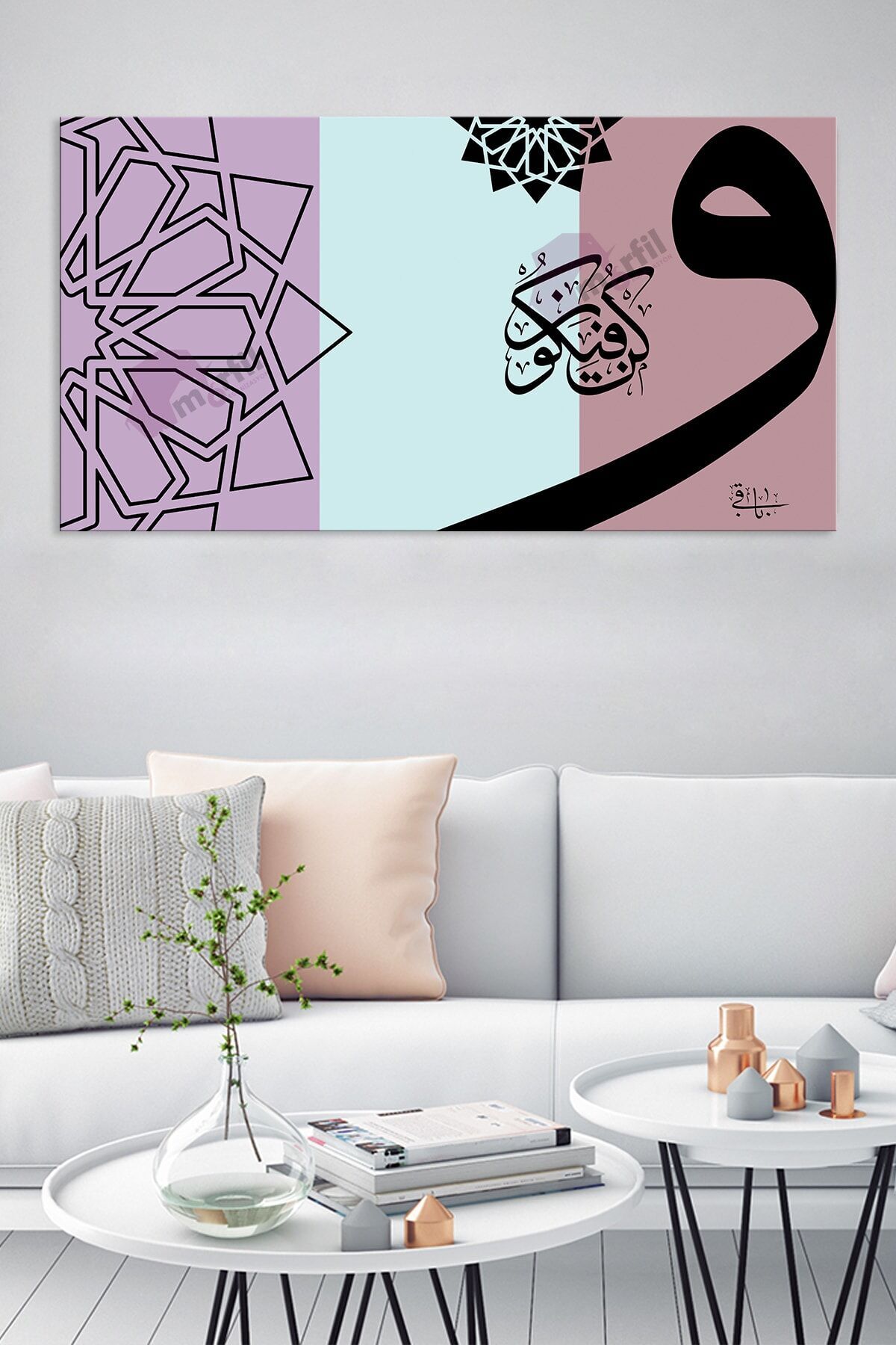Tek parça halinde sunulan Kun feyekun (ol der ve oluverir) islam dini hat kanvas tablo, manevi ve dini temalı dekorasyonunuza şıklık katar; Yüksek kaliteli kanvas materyali sayesinde uzun ömürlü kullanım ve renklerin canlılığını koruma özelliği sunar; Çerçeveli tasarımı ile duvarlarınıza modern ve estetik bir görünüm kazandırırken, aynı zamanda dini sanat eserlerini evinizin her köşesine taşımanızı sağlar; 7 farklı ölçüsüyle farklı boyutlardaki mekanlara uyum sağlayarak kişisel zevkinize ve mekanın ihtiyaçlarına göre tercih edilebilir;