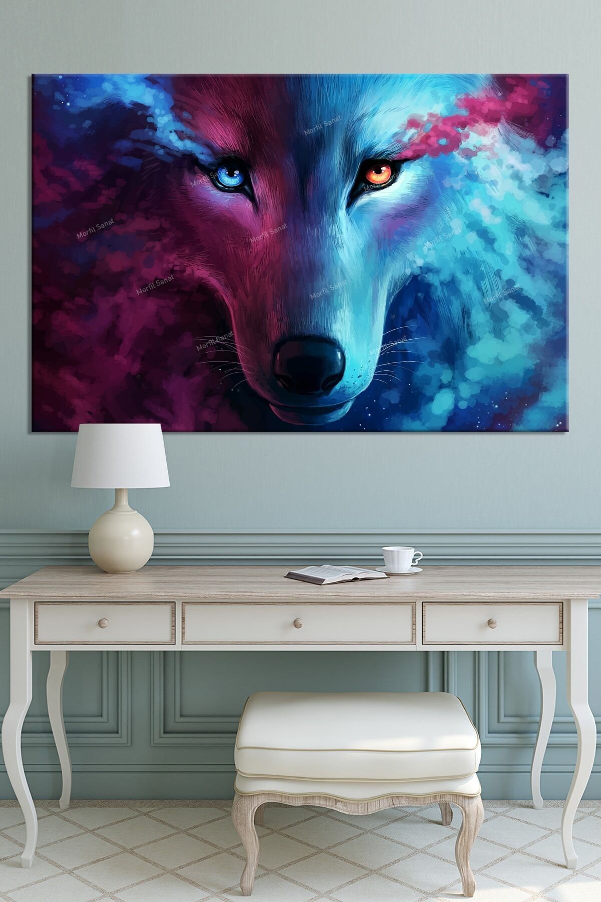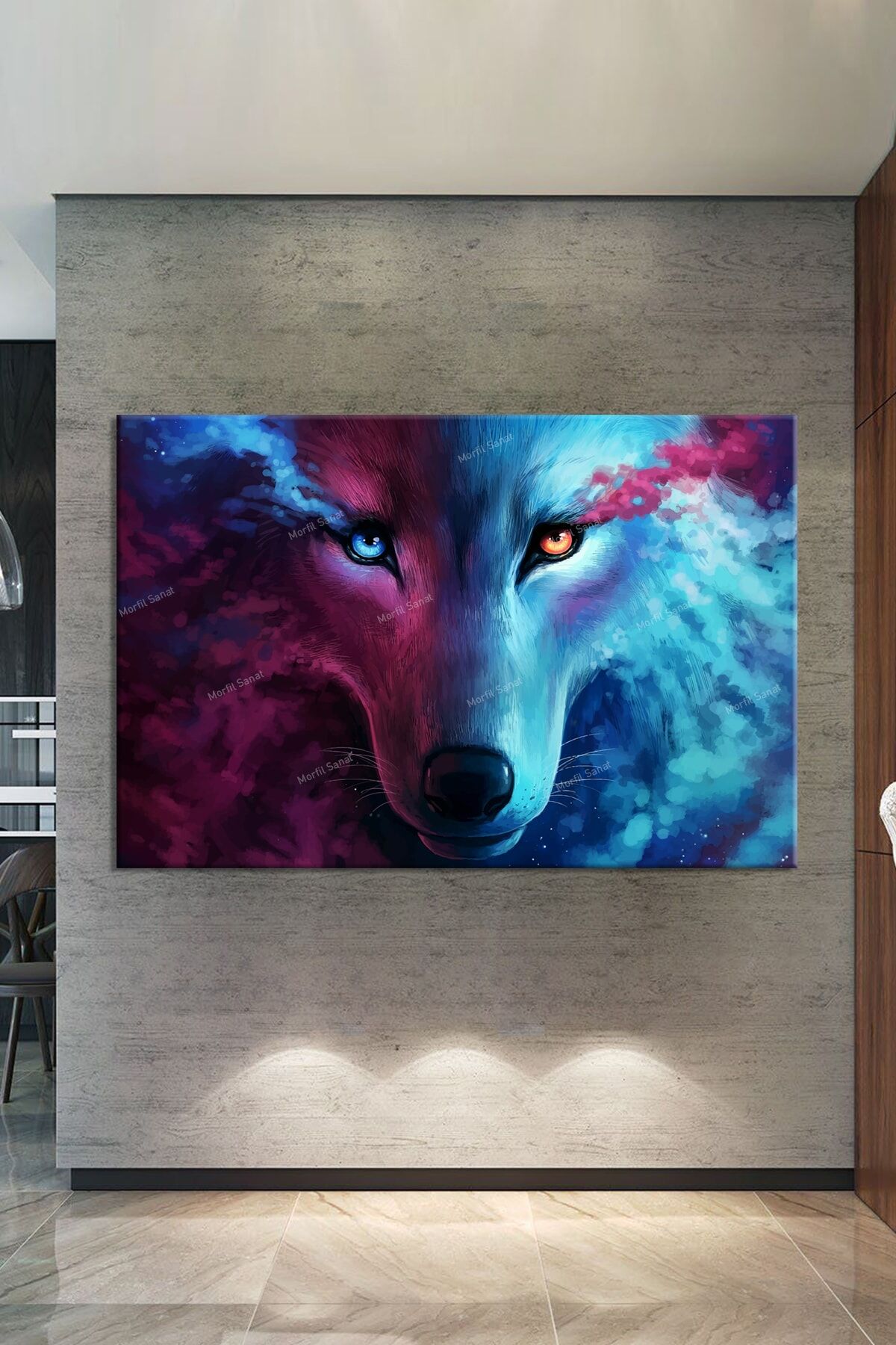 Yüksek kaliteli kanvas materyal kullanılarak üretilmiş, uzun ömürlü ve dayanıklı bir yapıya sahiptir; Tek parça halinde sunulan bu tablo, kolay montaj imkanı sağlar ve duvarınızda şık bir görünüm oluşturur; Siyah ve beyaz renklerin asaletini yansıtan tasarımıyla, ay ışığında kurt figürü, mekanınıza modern ve estetik bir dokunuş katar;