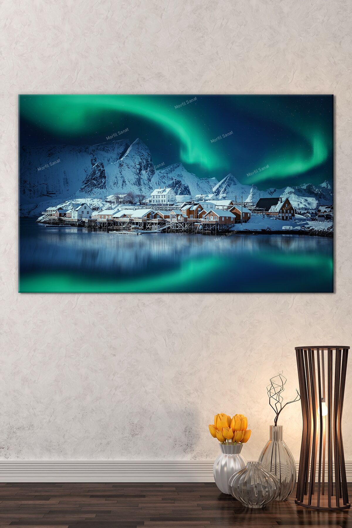 Kuzey Işıkları Yeni Yıl New Year Yılbaşı Doğa Manzara Dekoratif Kanvas Tablo (8 Farklı Ölçü)
