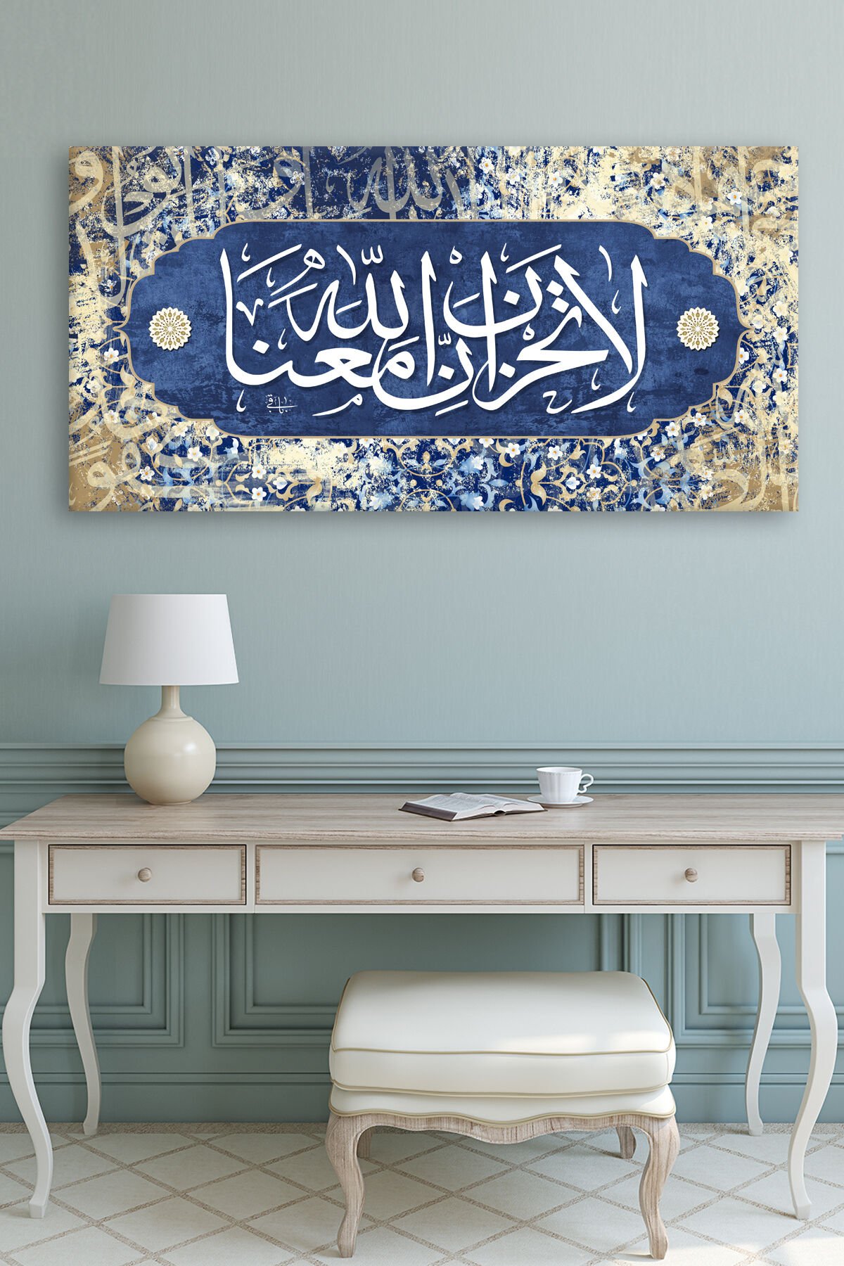 La Tahzen Innallahe Meana! Üzülme, Allah Bizimle Beraberdir Dini Islami Hat Kanvas Tablo