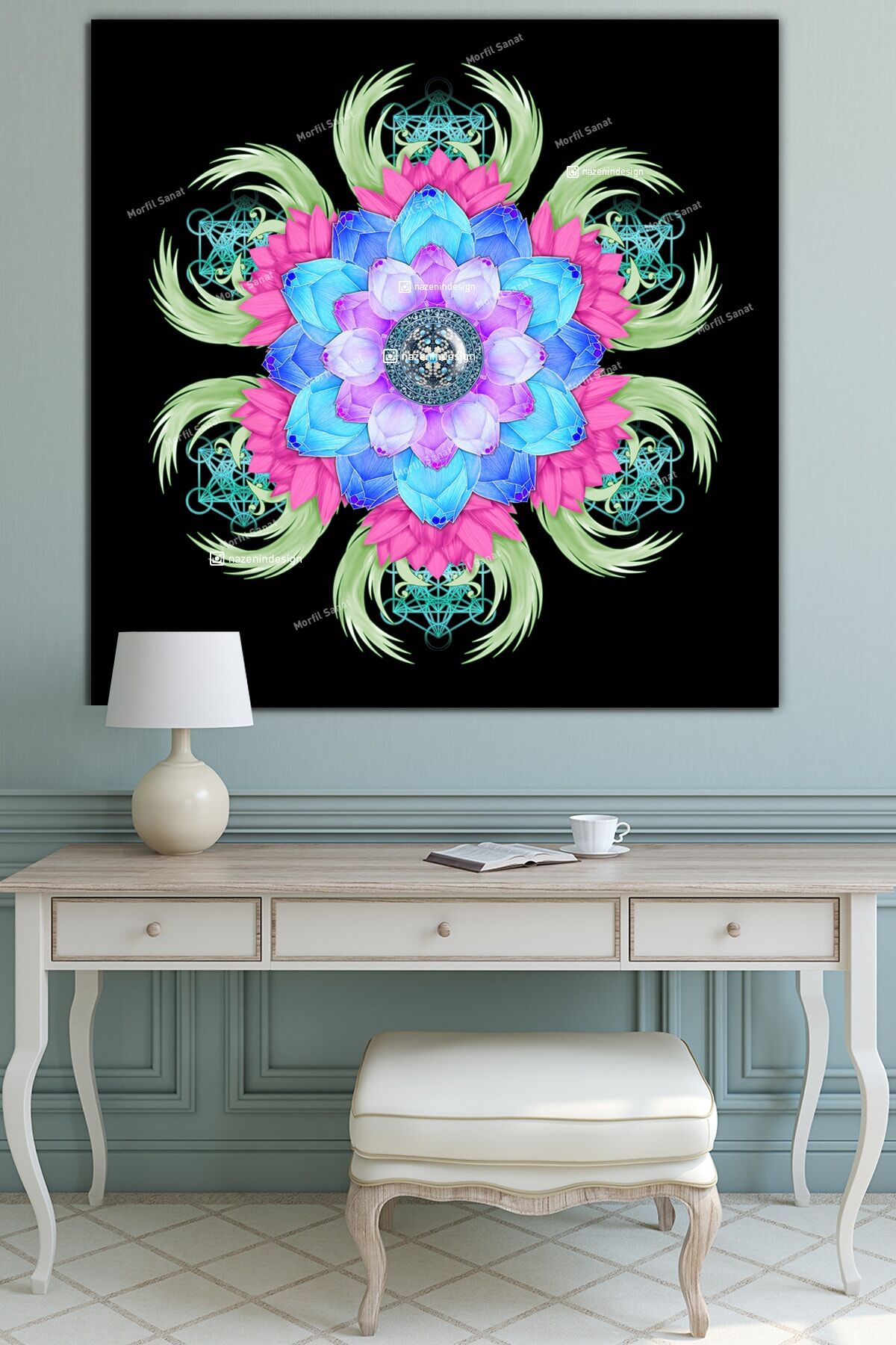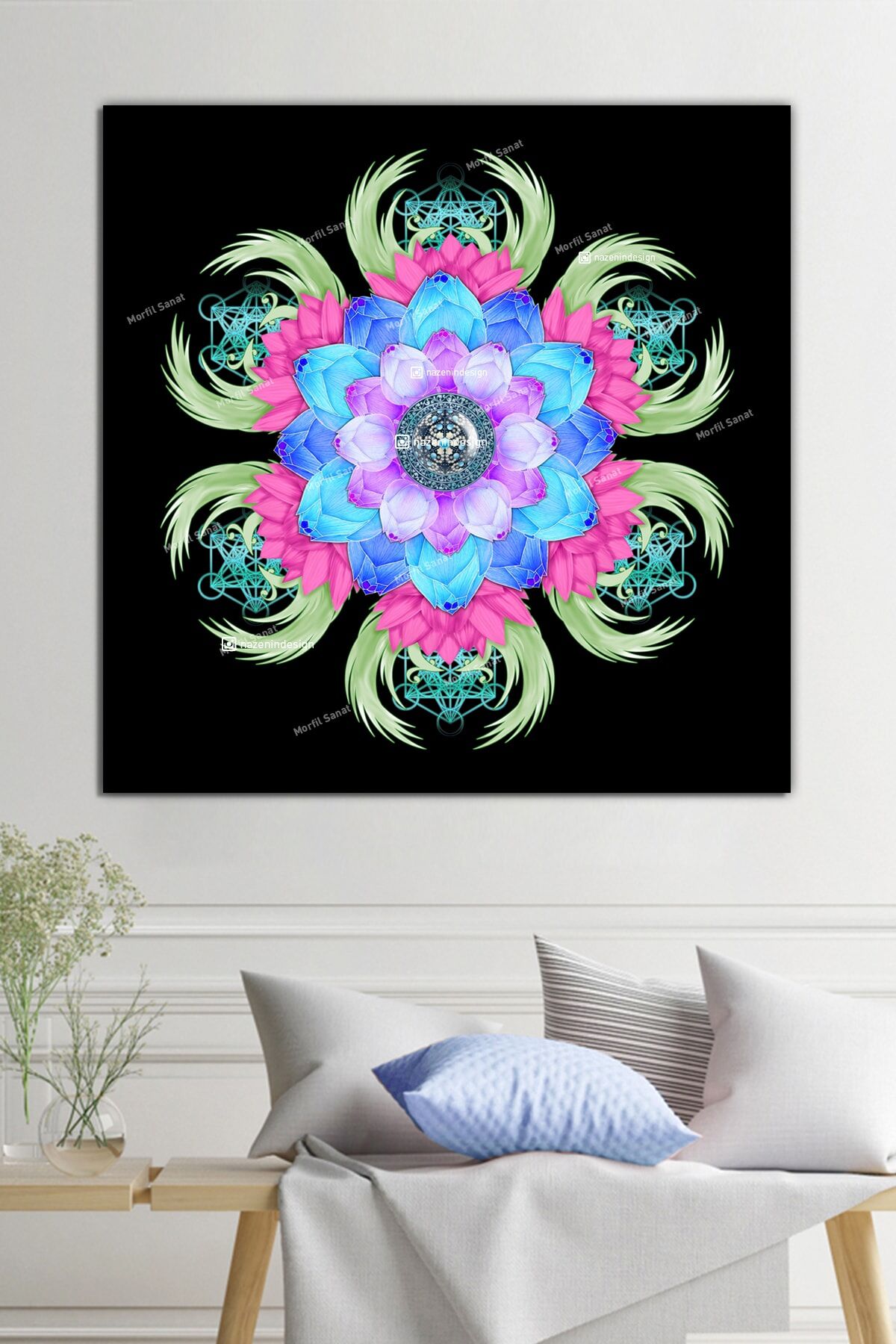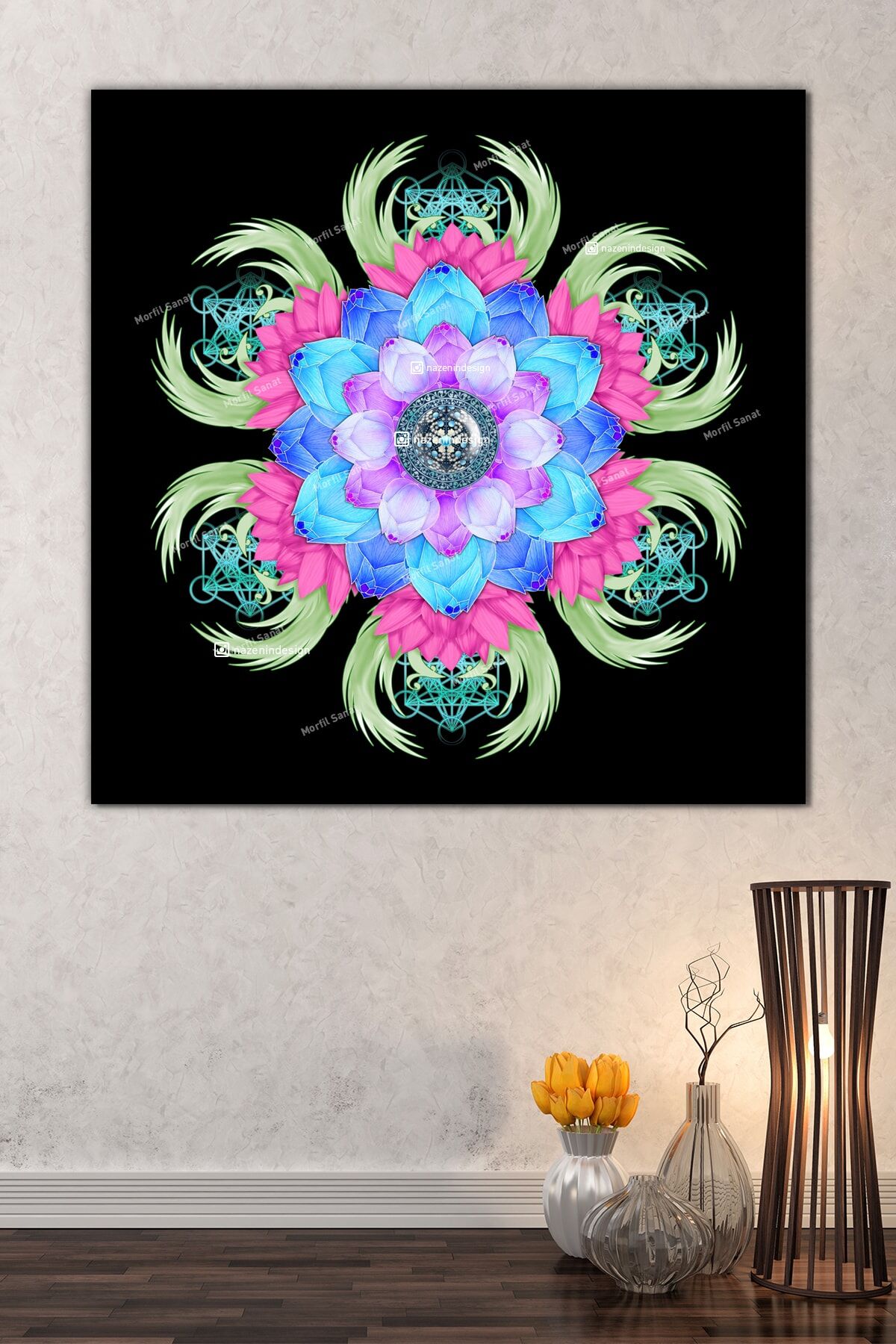Lotus Çiçeği Ve Yaşam Çiçeği Kanvas Tablo