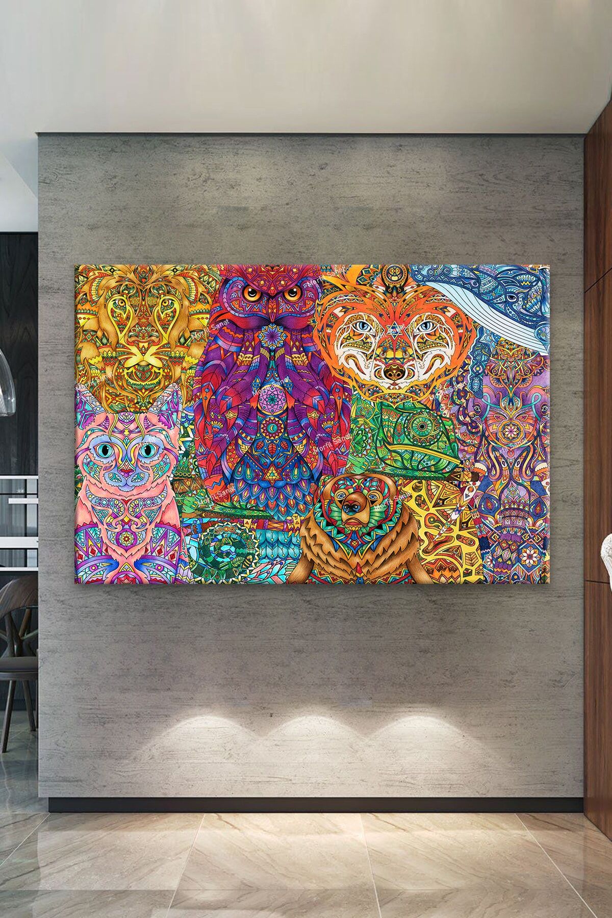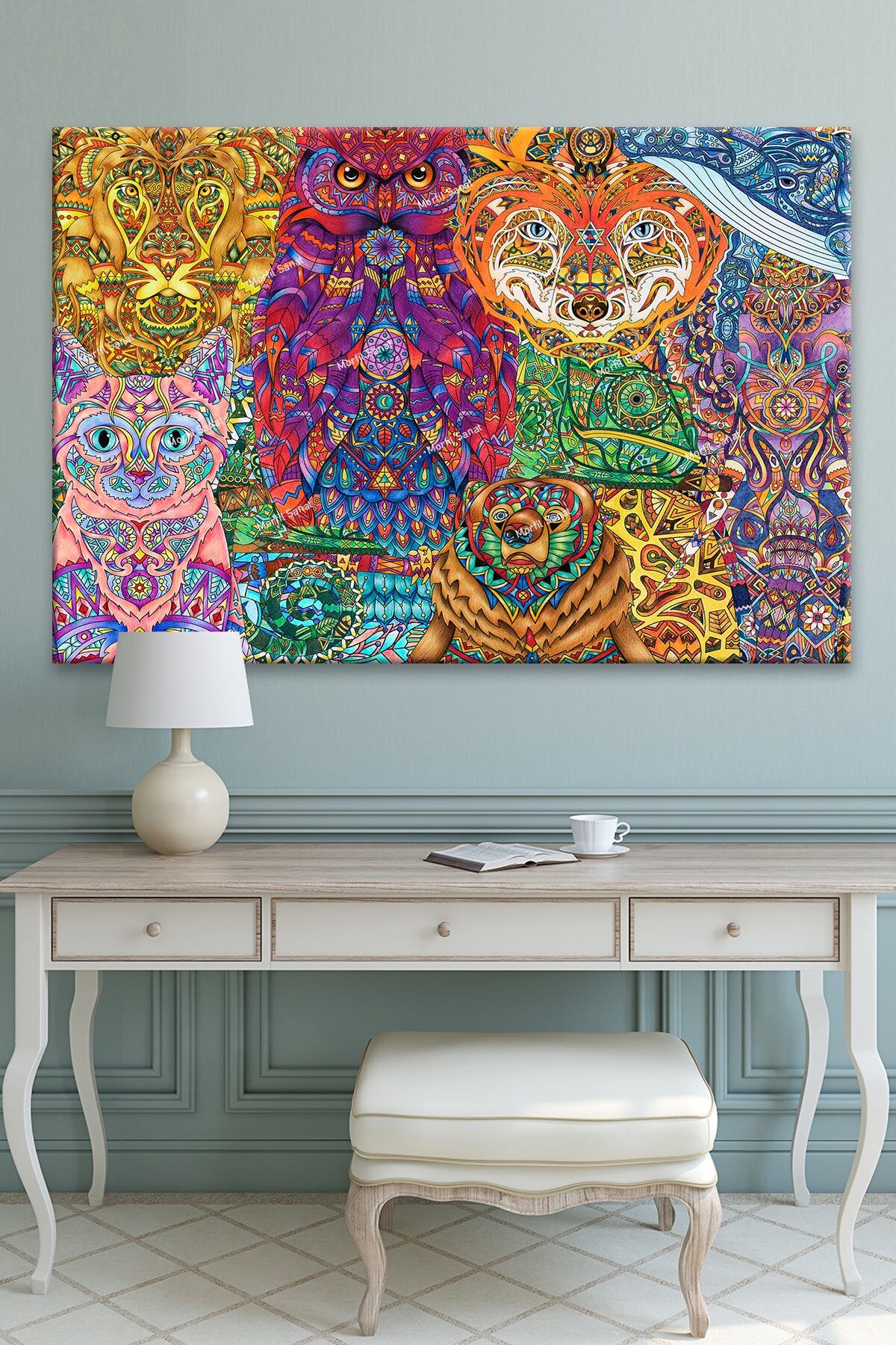 Mandala Hayvanlar Dekoratif Sanatsal Kanvas Tablo