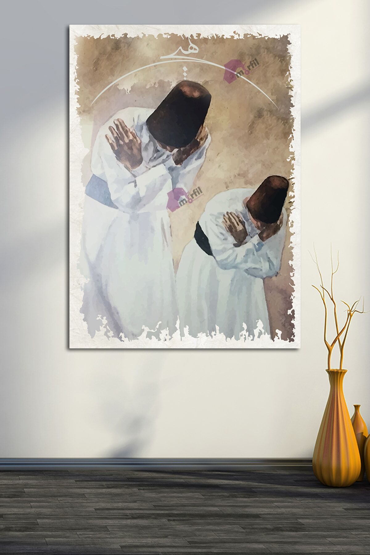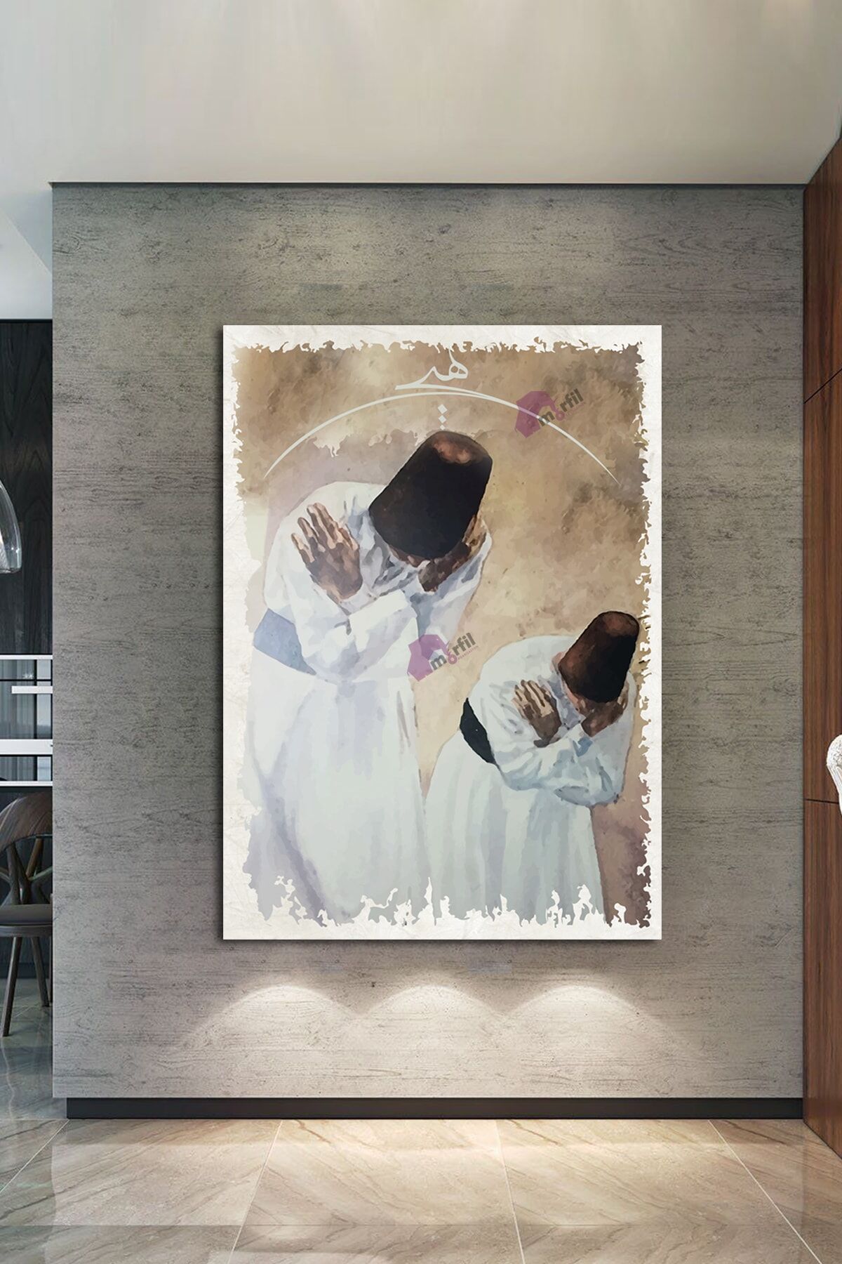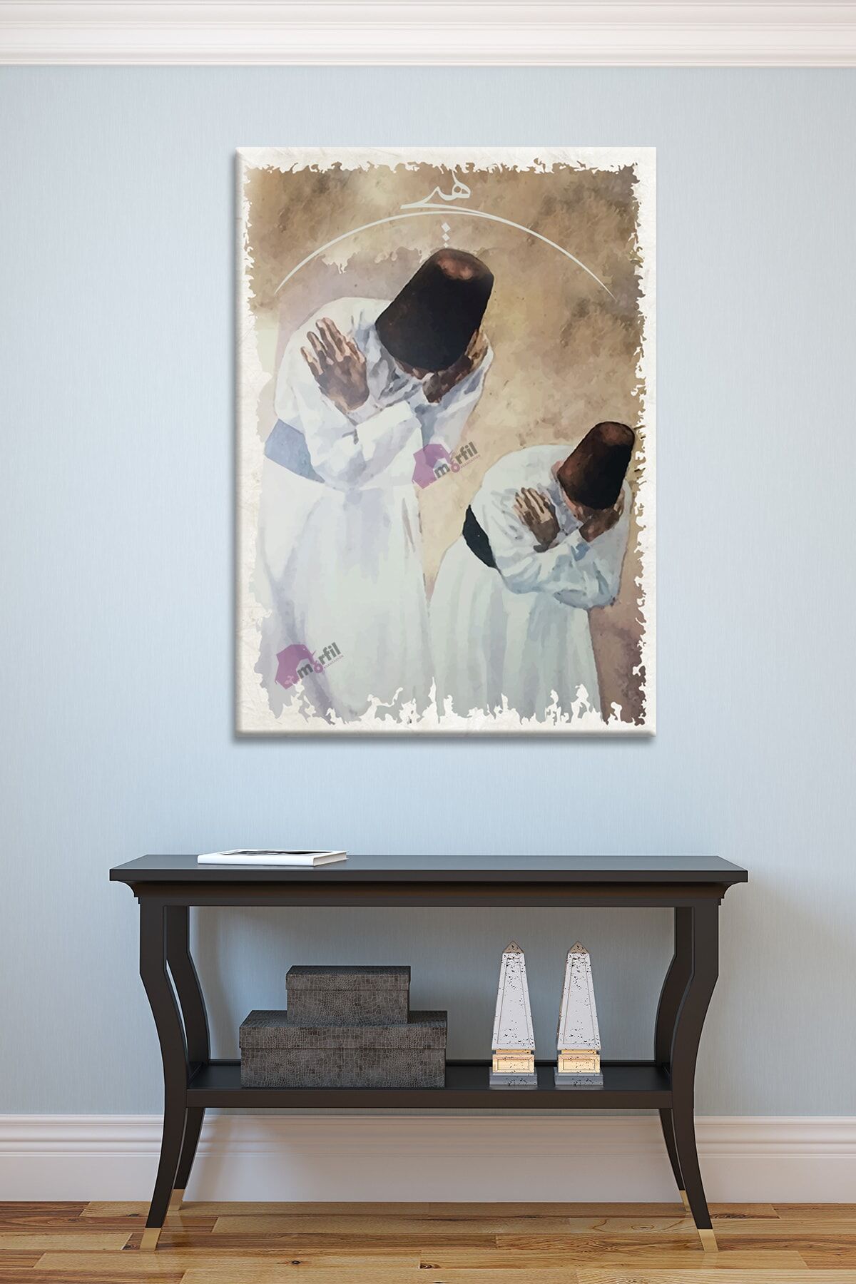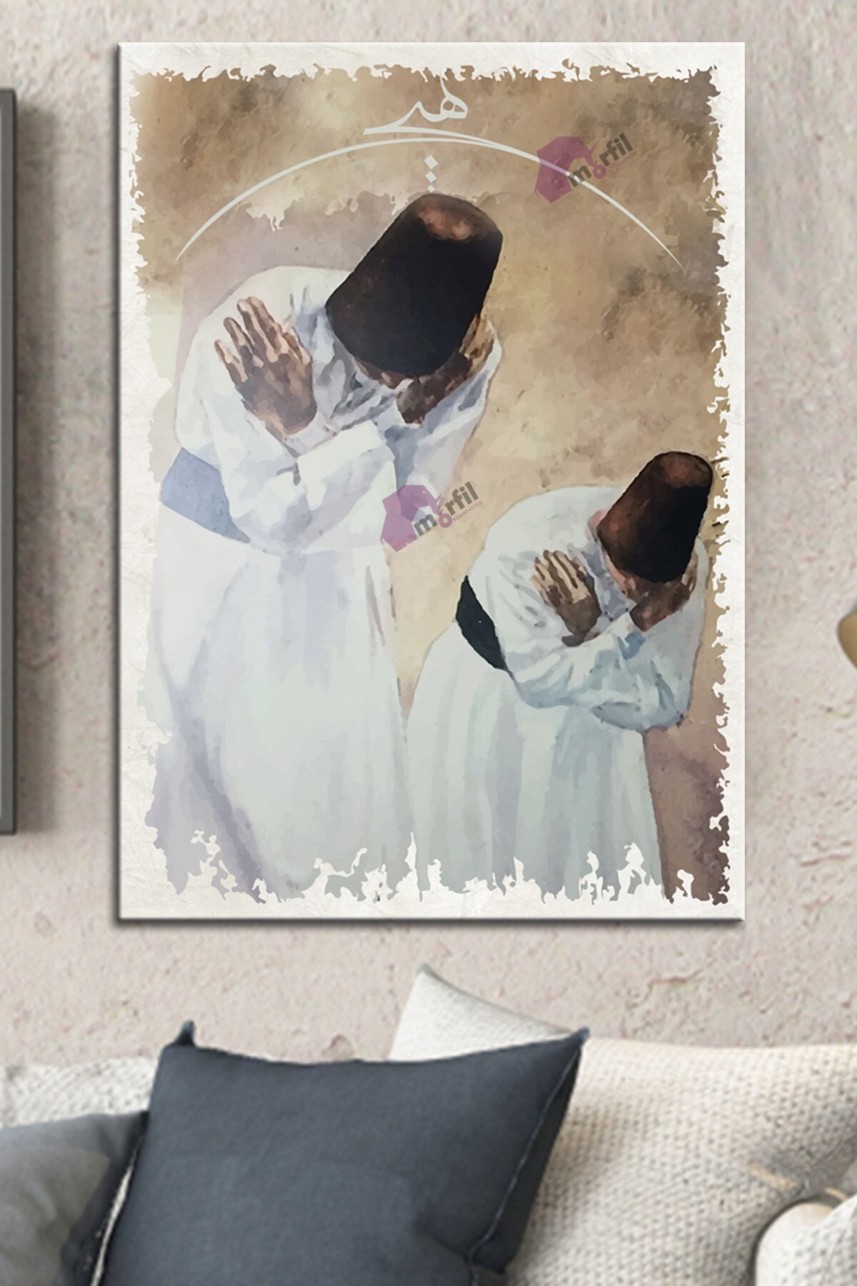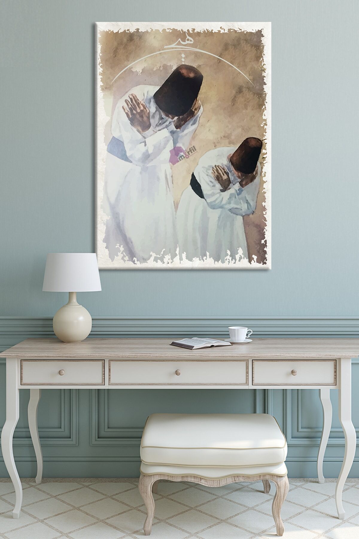 Mevlevi Dervişler Ve Hiç Yazılı Dini Islami Kanvas Tablo