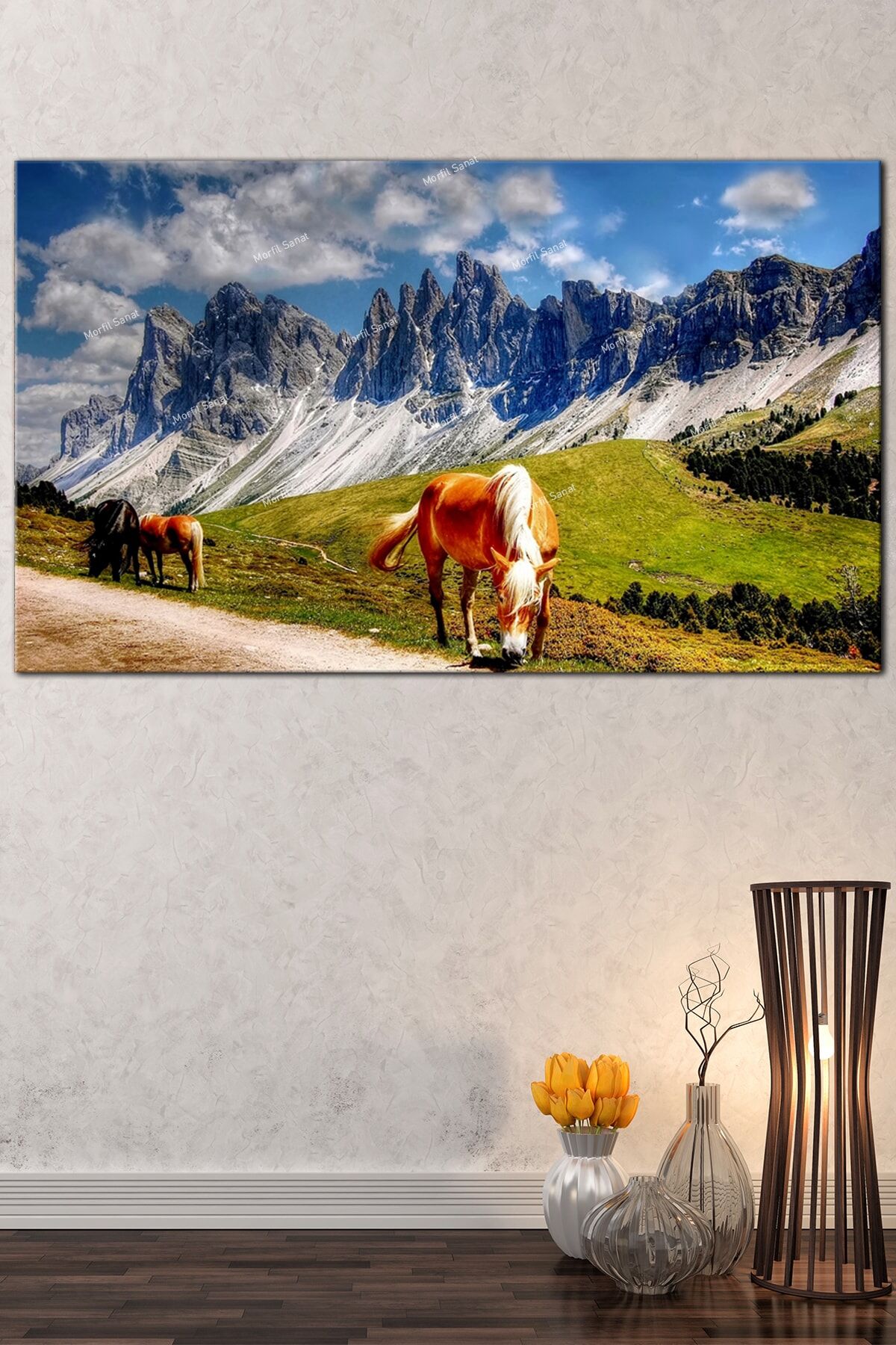 Orman Doğa Atlar Tabiat Dekoratif Kanvas Tablo 7 Farklı Ölçü