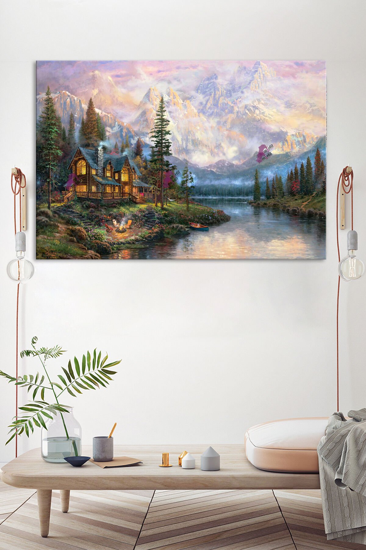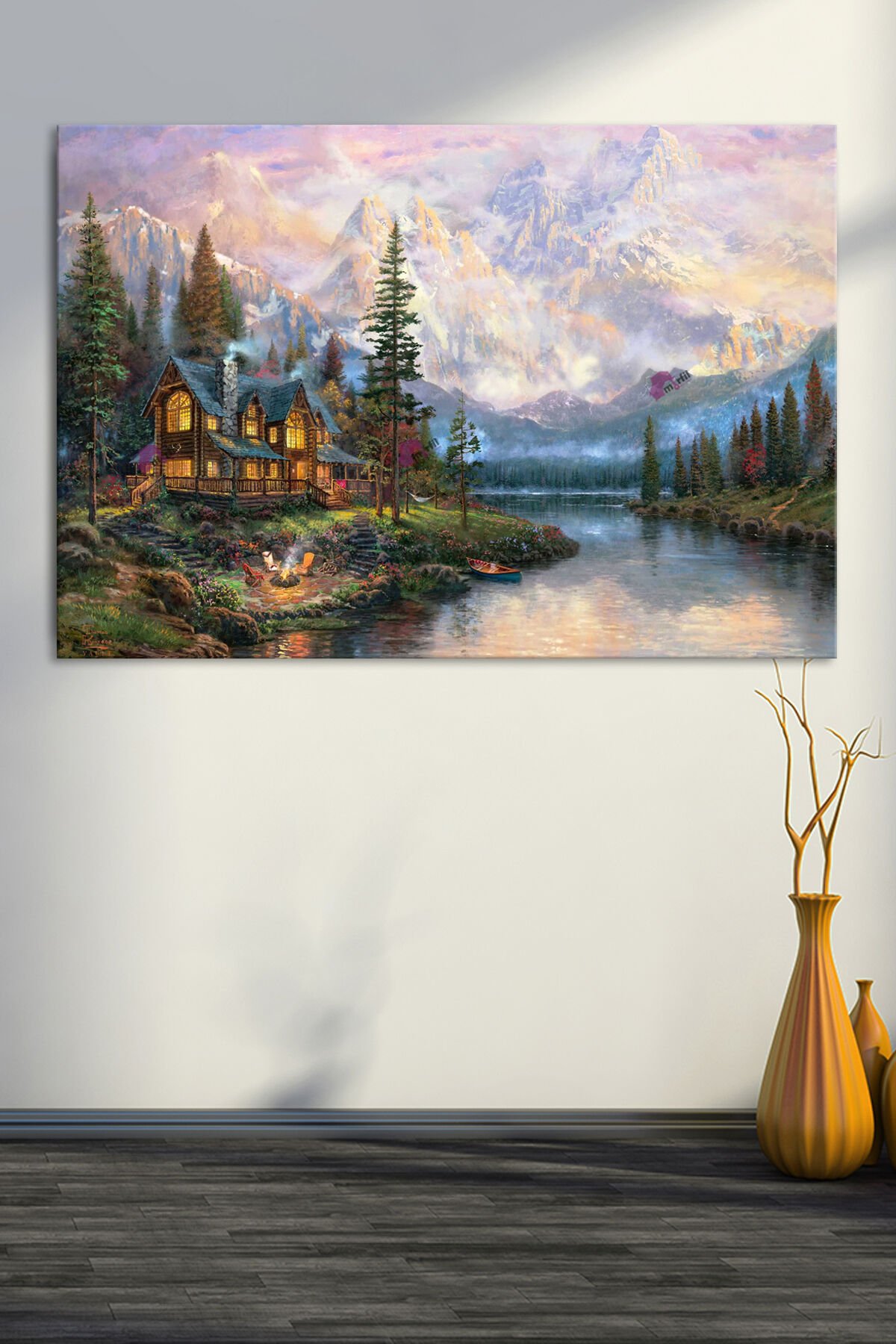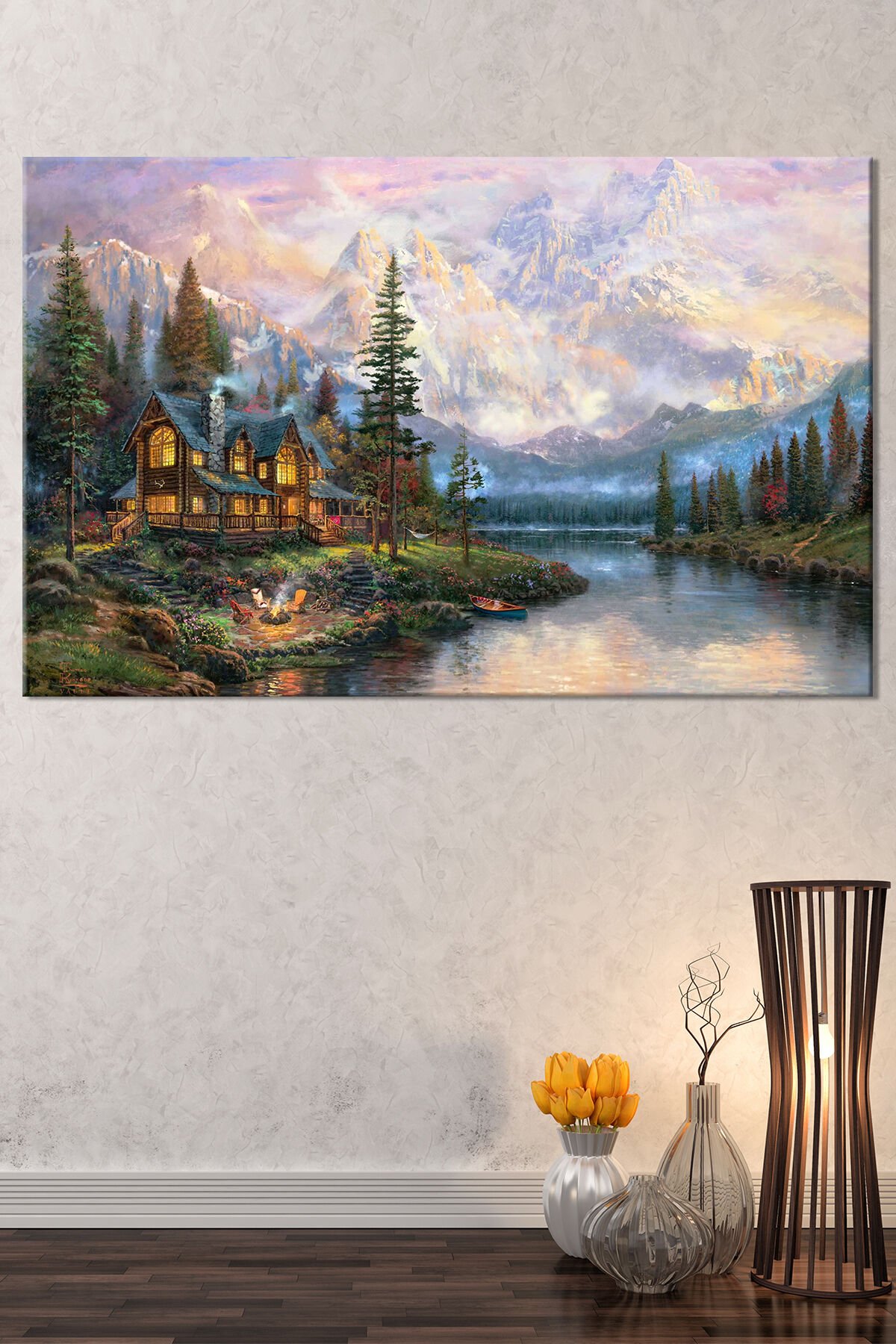 Orman Göl Muhteşem Doğa Manzara Vintage Dekoratif Kanvas Tablo (7 Farklı Ölçü)