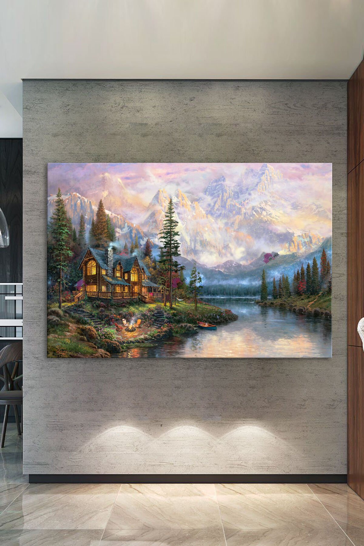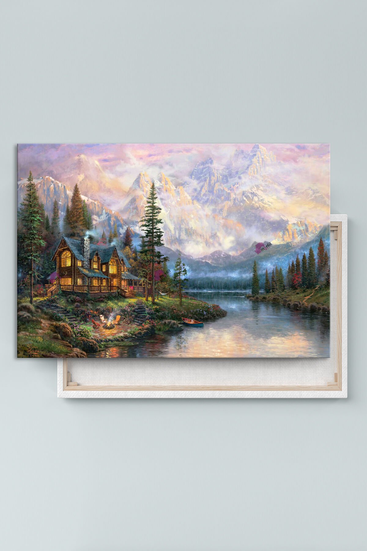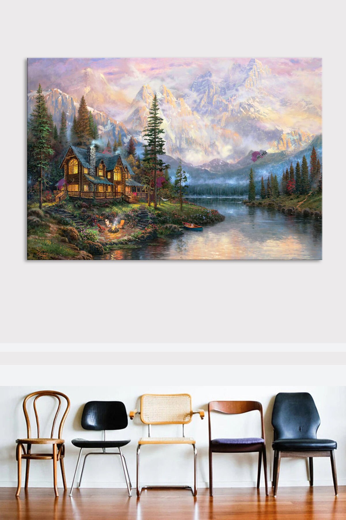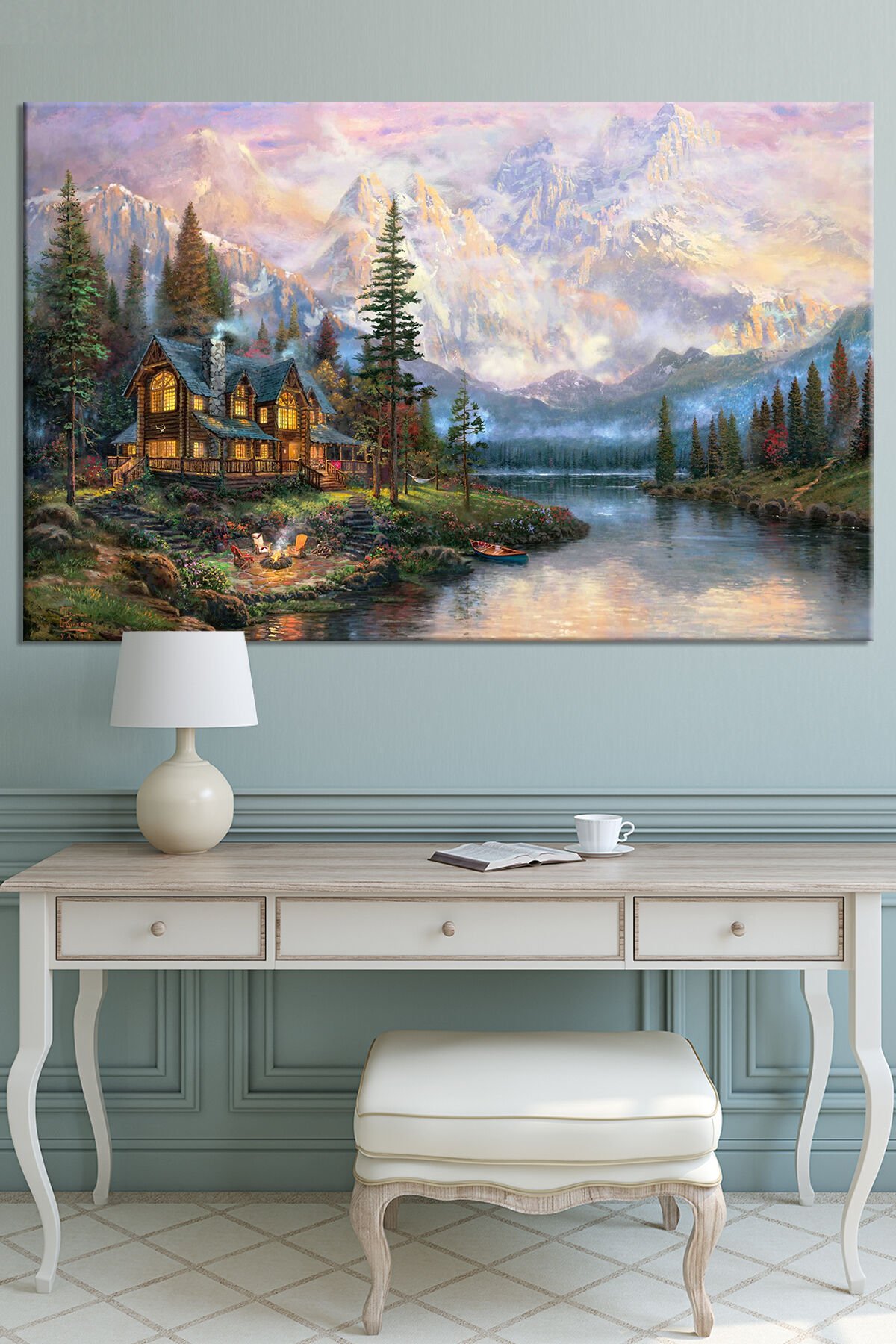 Orman Göl Muhteşem Doğa Manzara Vintage Dekoratif Kanvas Tablo (7 Farklı Ölçü)