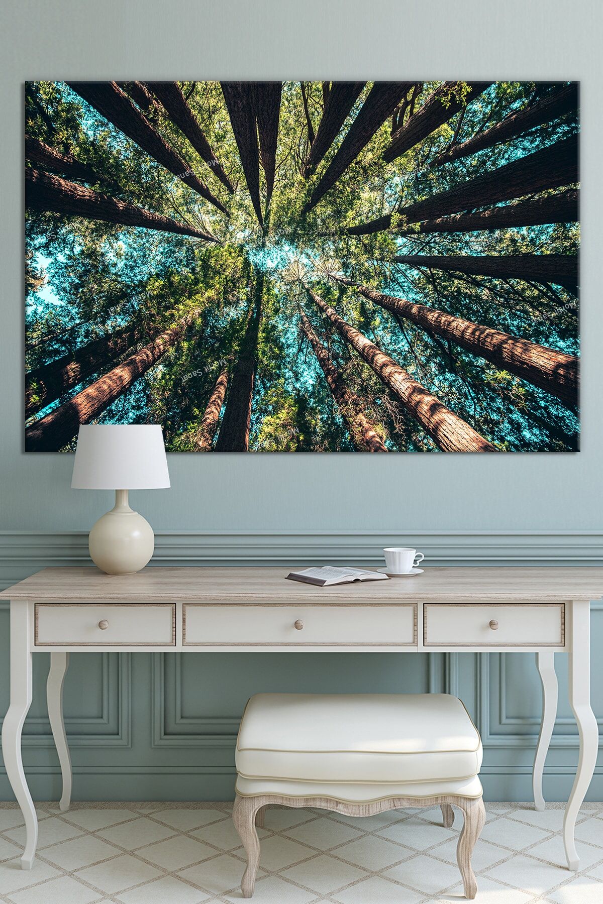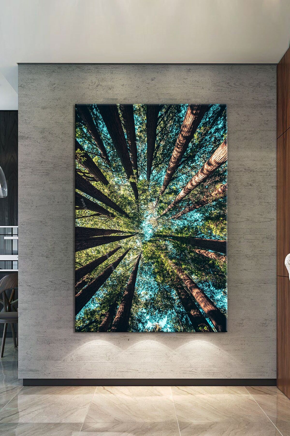Ormanda Ağaçlar Altından Gökyüzüne Bakış Dekoratif Kanvas Tablo
