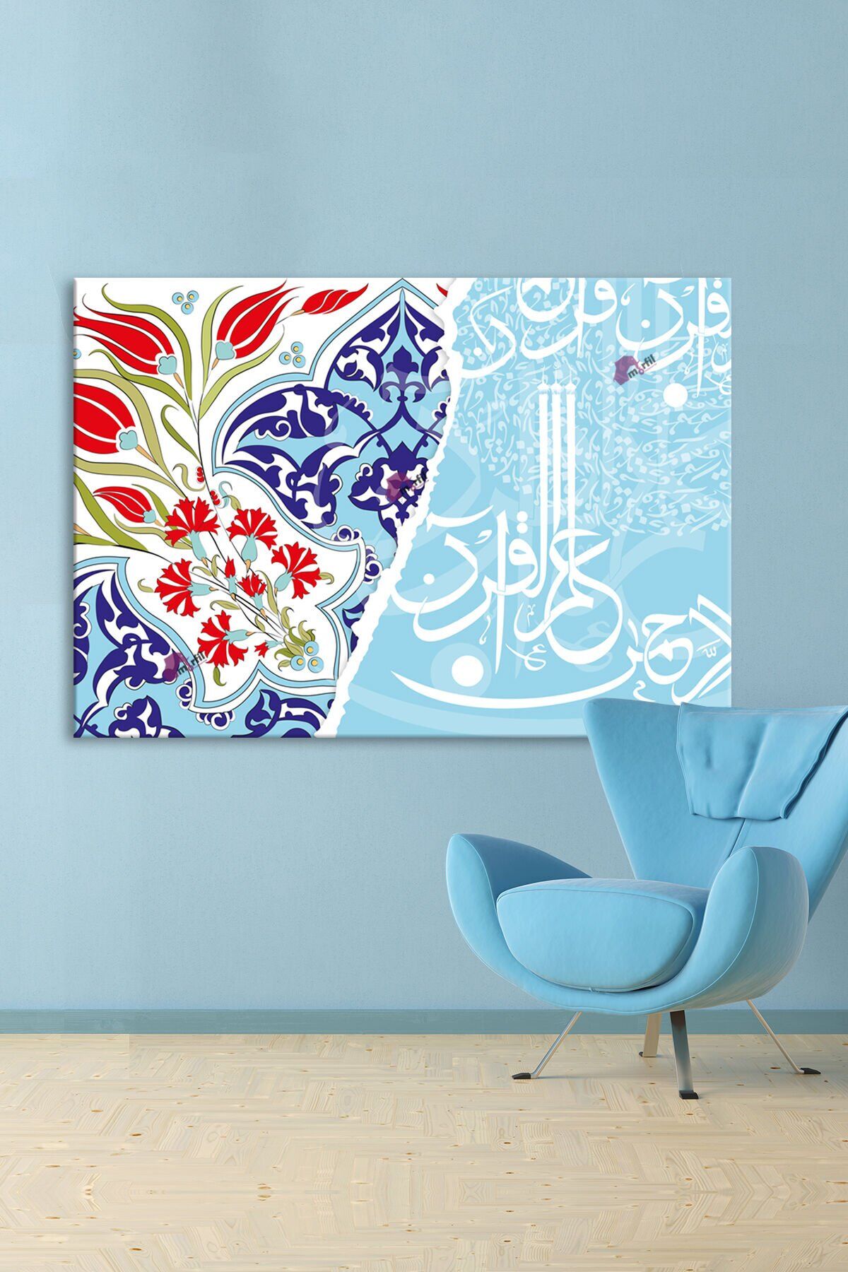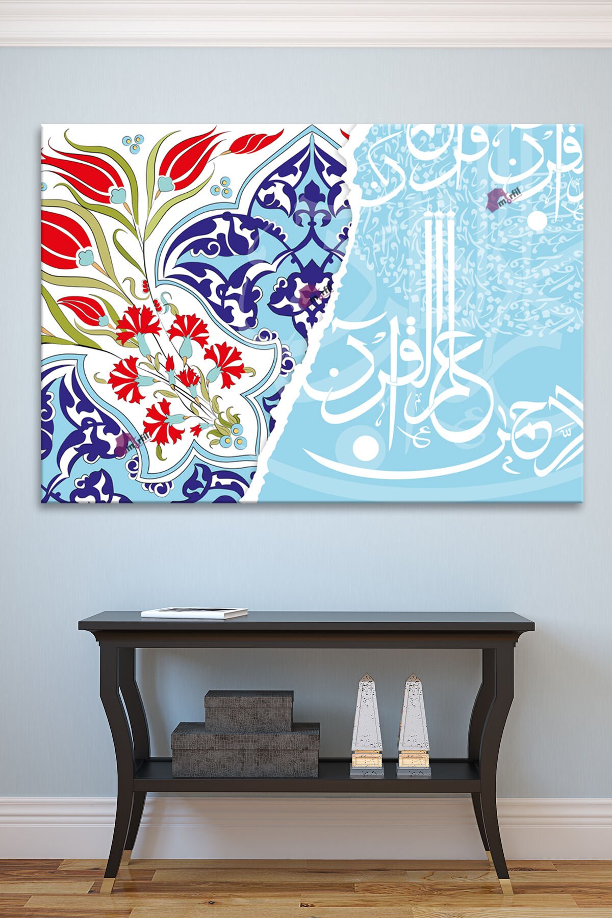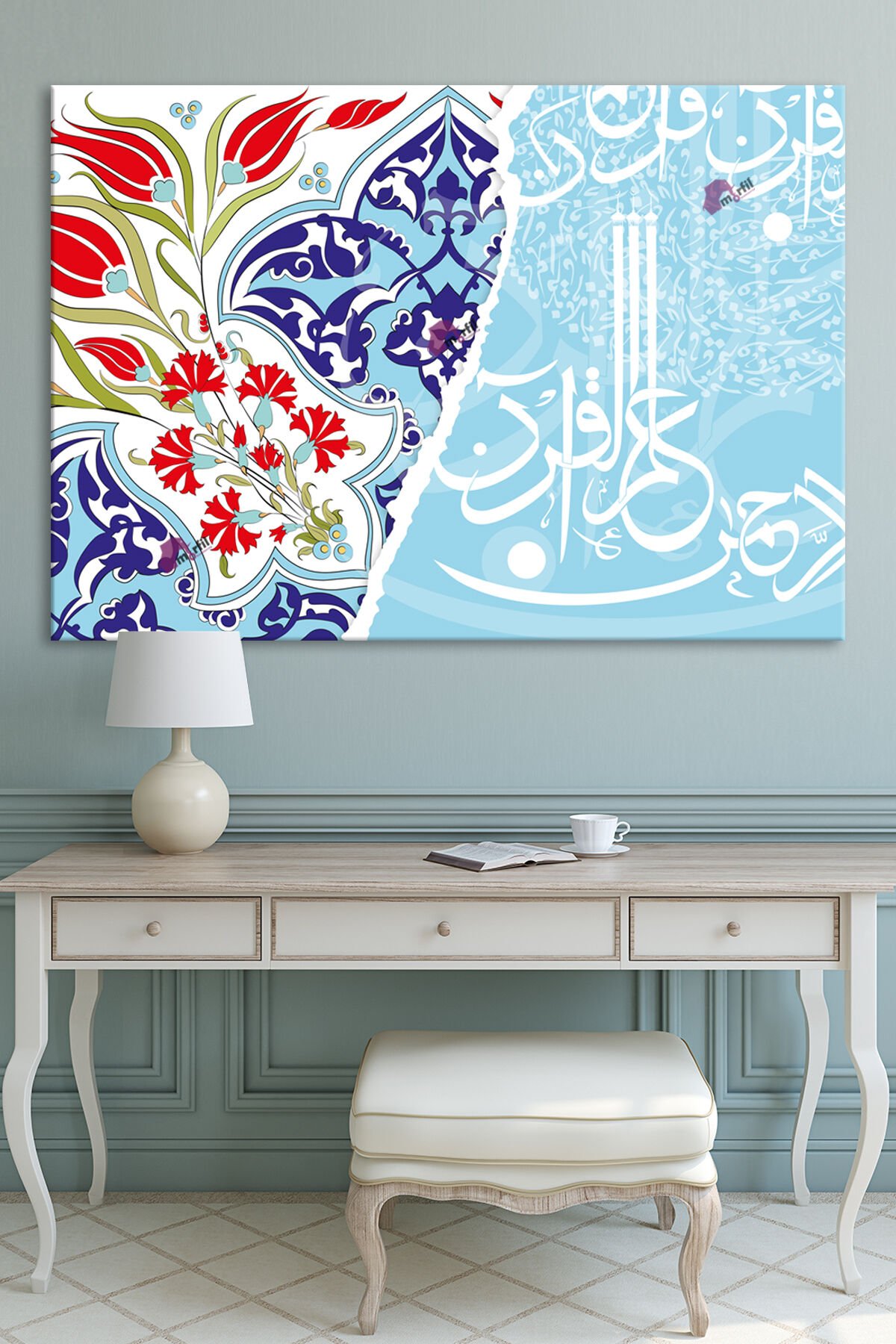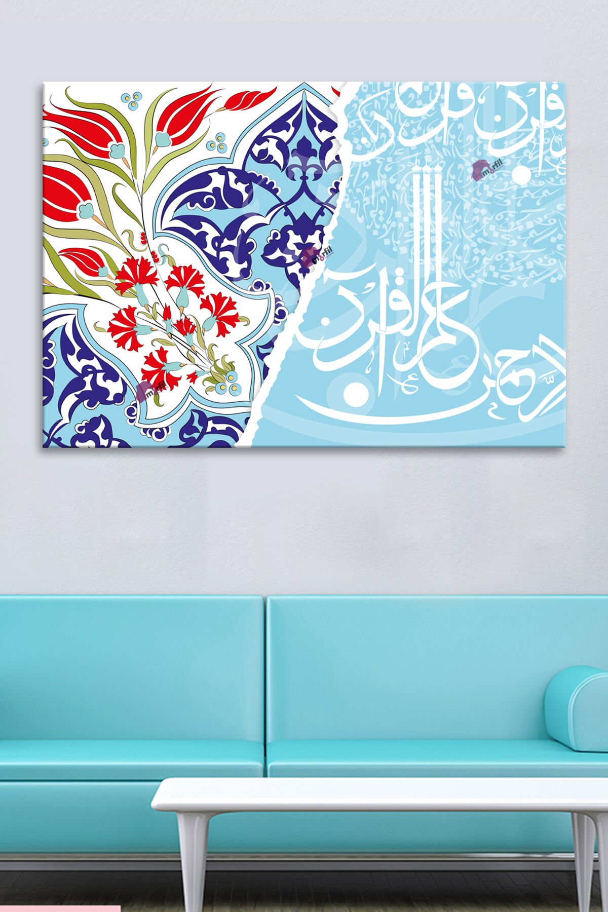 Rahman Suresi ''Errahman Allemel Kuran'' Dini Hat Kanvas Tablo İslami Dini Hat Kanvas Tablo