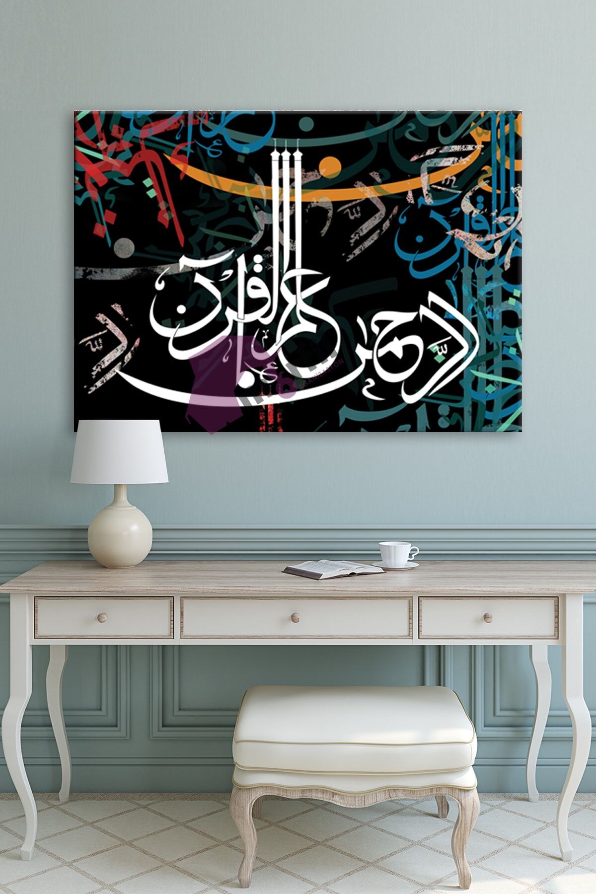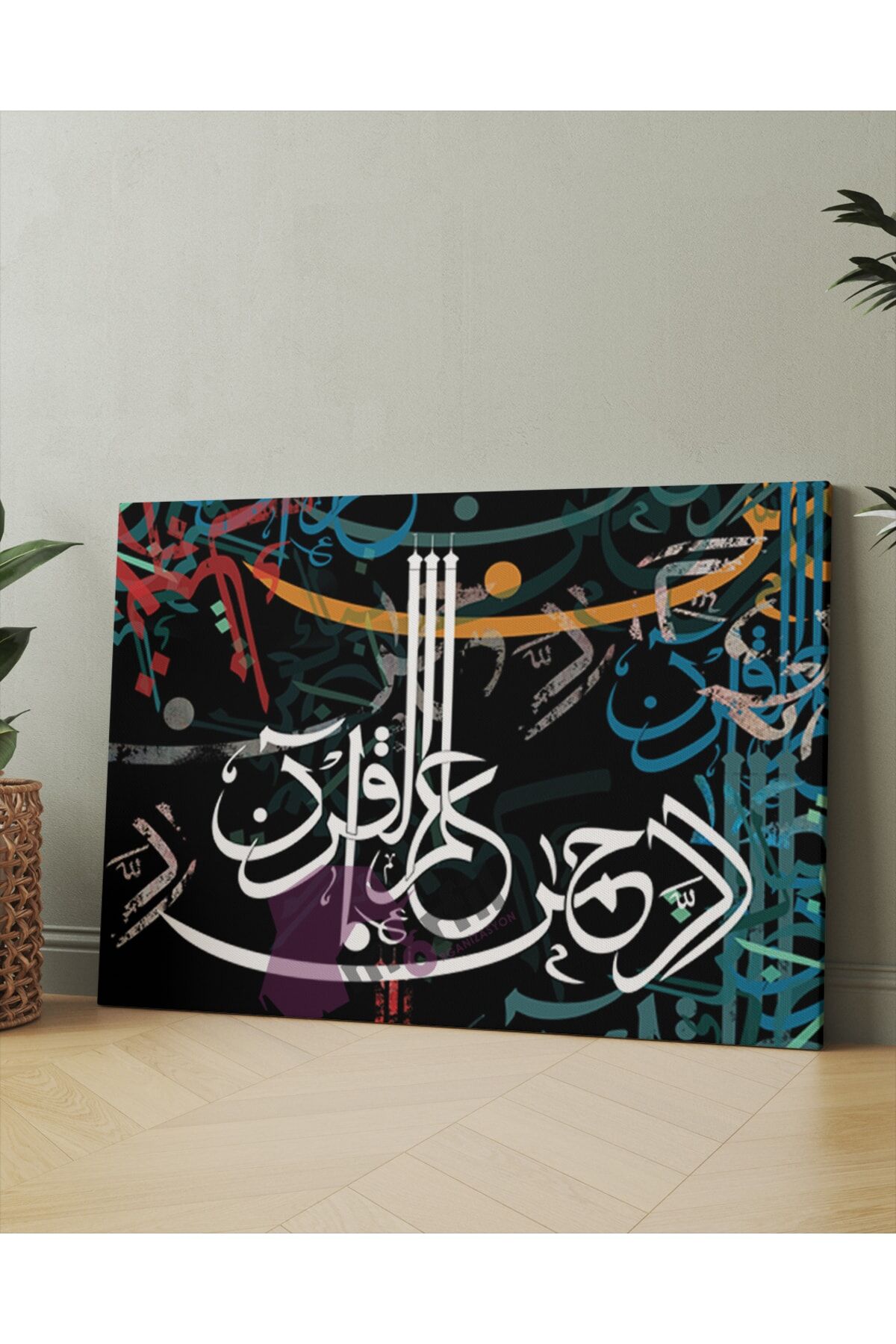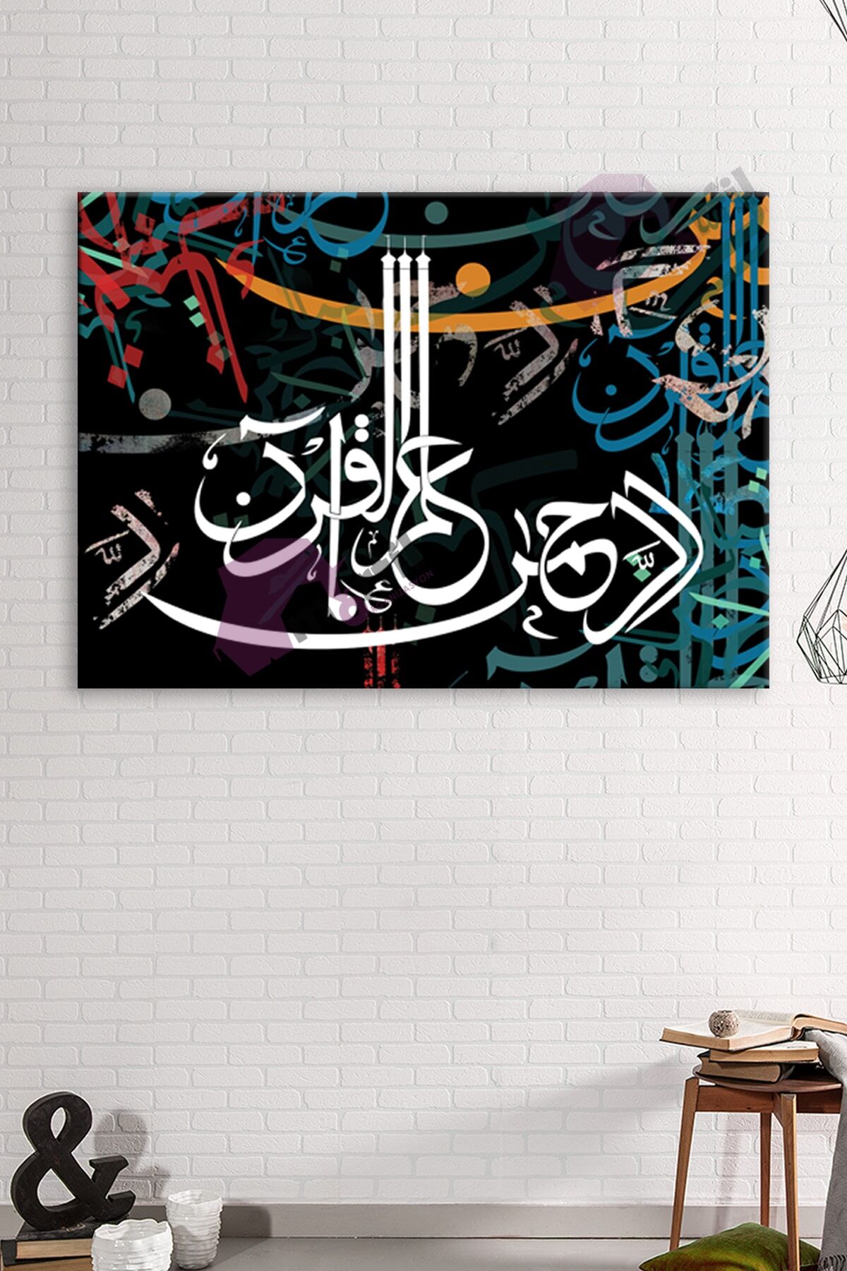 Rahman Suresi ''errahman Allemel Kuran'' Islami Dini Hat Kanvas Tablo ( 7 Farklı Ölçü )