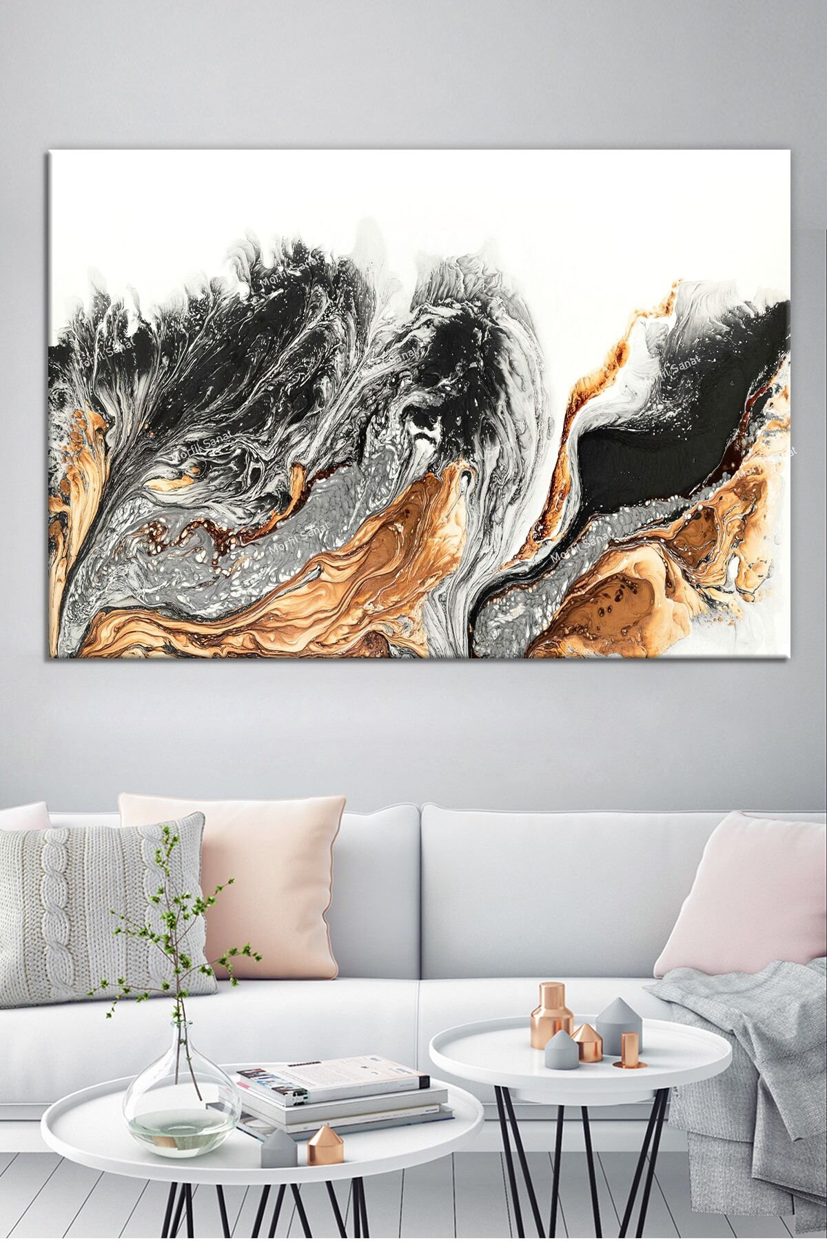 Tek parça halinde sunulan bu soyut sanat eseri, mekanınıza modern ve çağdaş bir dokunuş katıyor; 8 farklı ölçüsüyle her türlü oda dekorasyonuna uyum sağlayacak şekilde tasarlanmıştır; Yüksek kaliteli kanvas materyali sayesinde uzun ömürlü kullanım ve renklerin canlılığını koruma özelliği sunar;