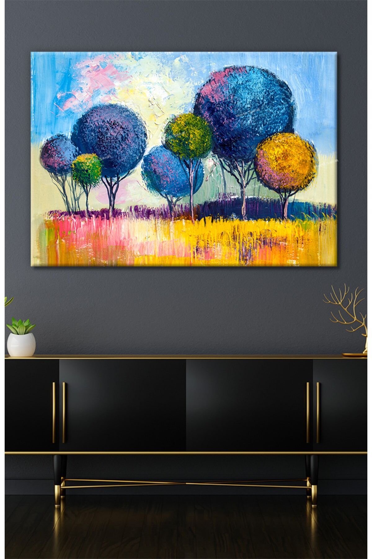 Renkli Ağaçlar Yağlıboya Efektli Sanatsal Dekaratif Kanvas Tablo