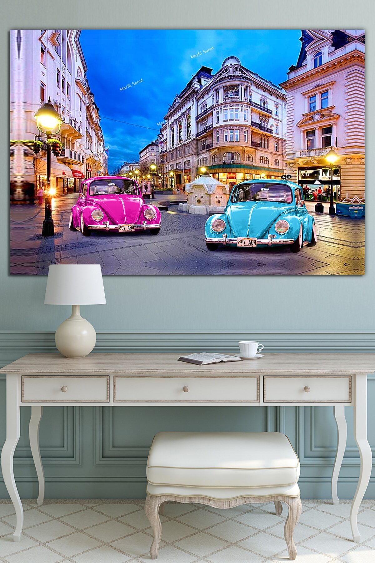 Renkli Vosvoslar Ve Şehir Kanvas Tablo