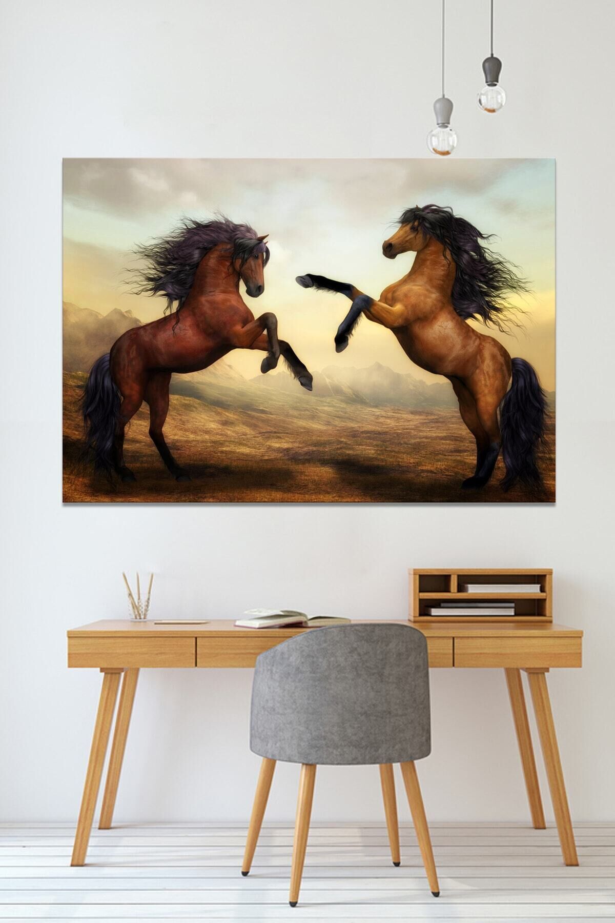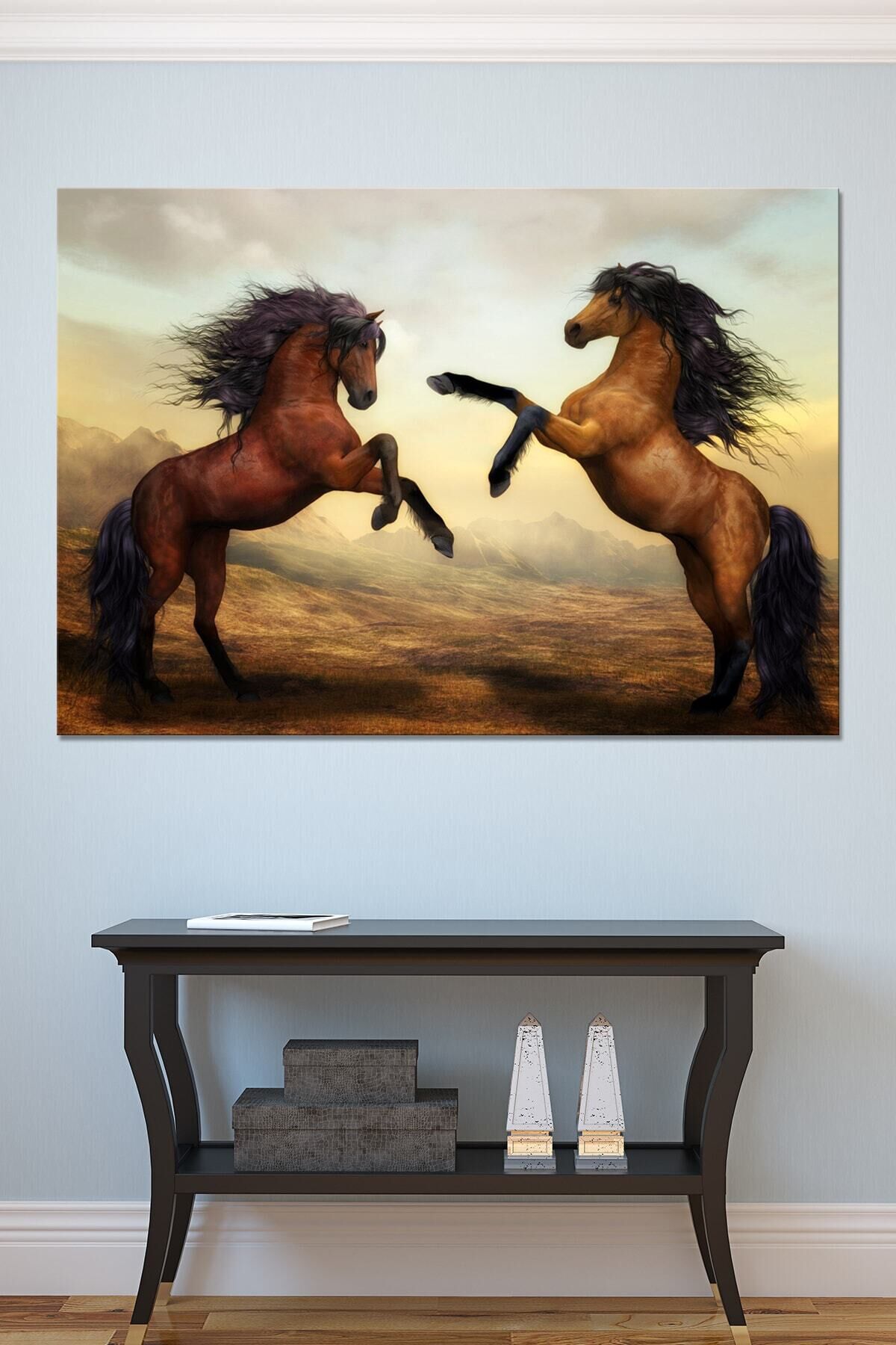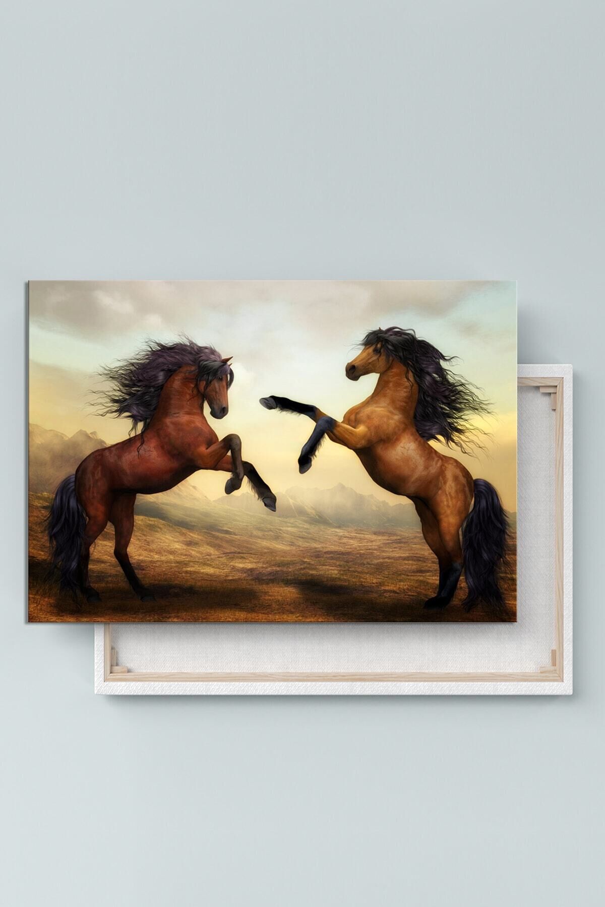 Şaha Kalkmış Çift Asil At Hayvan Sanatsal Dekoratif Kanvas Tablo (8 Farklı Ölçü)