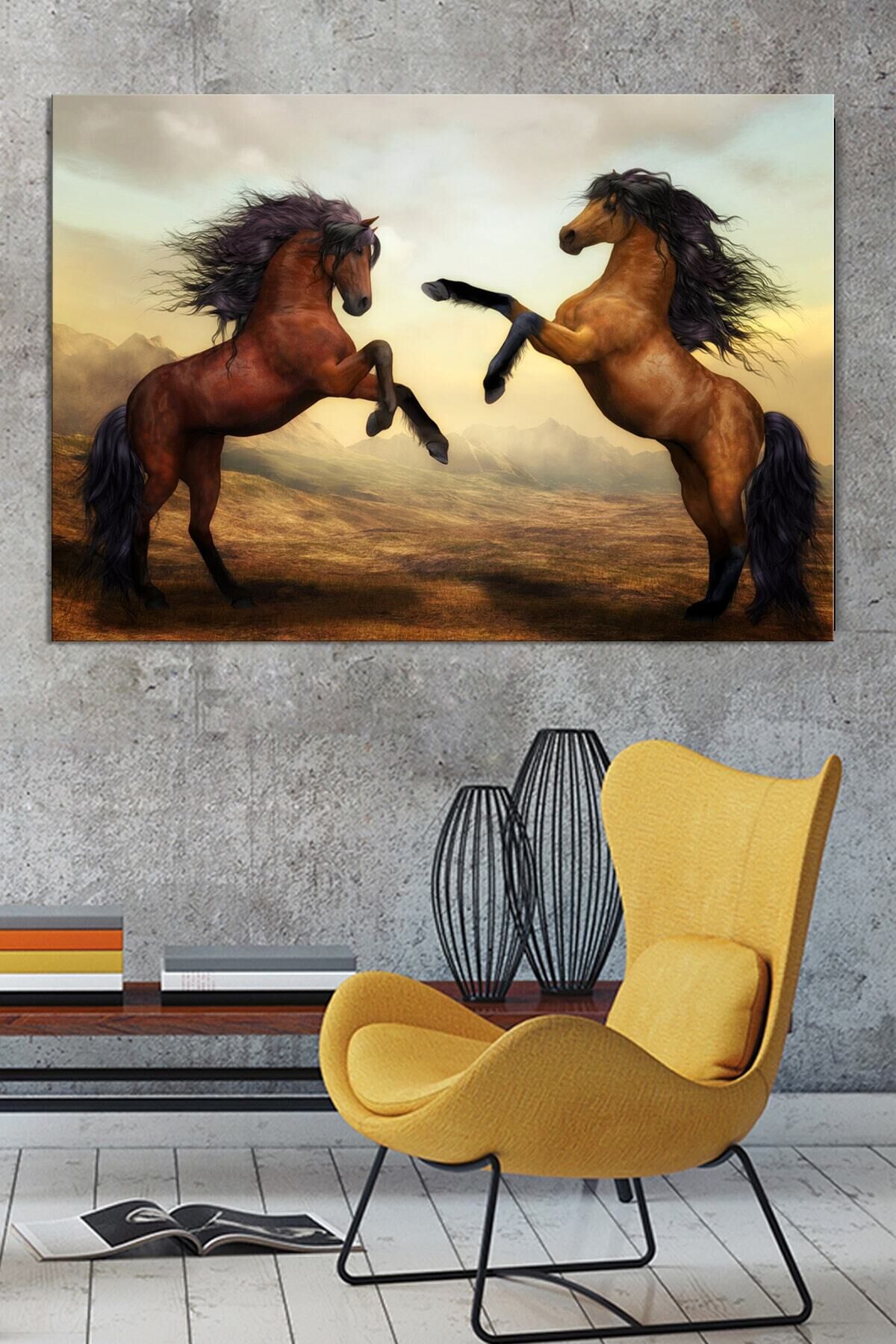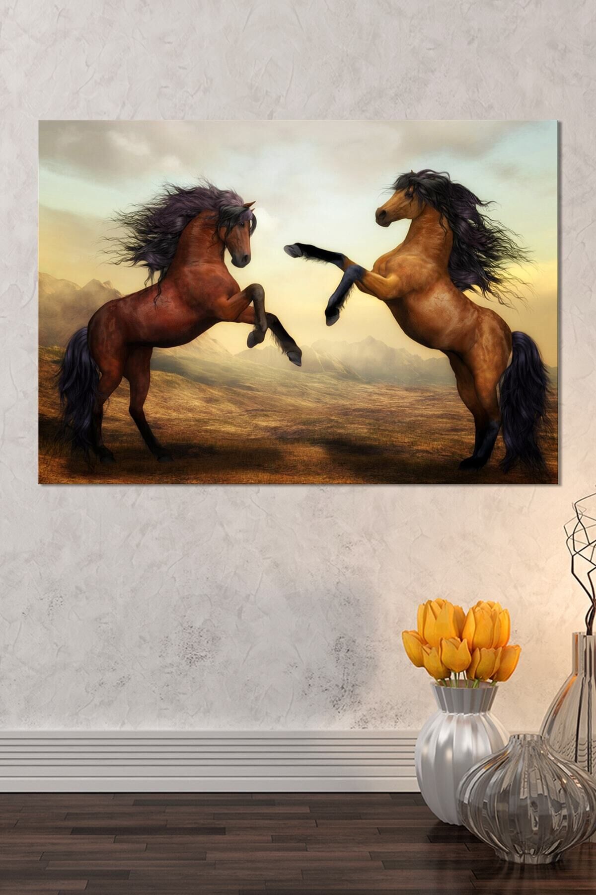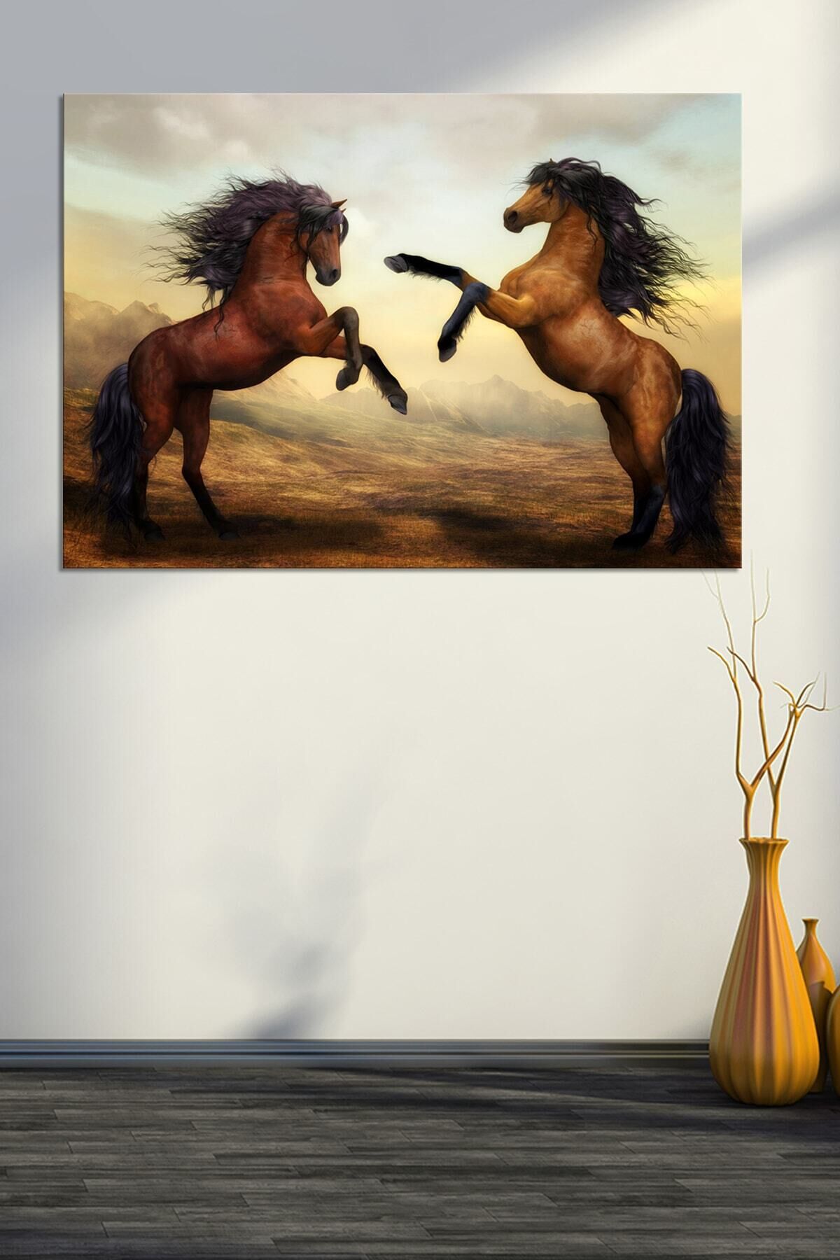 Şaha Kalkmış Çift Asil At Hayvan Sanatsal Dekoratif Kanvas Tablo (8 Farklı Ölçü)