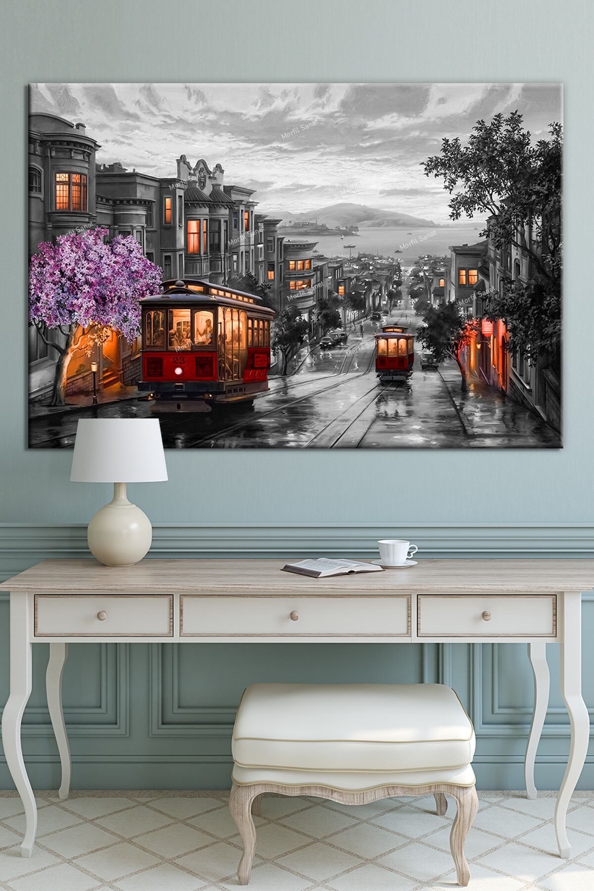 San Francisco Downtown Tramvay Şehir Yaşam Dekaratif Kanvas Tablo (7 Farklı Ölçü)