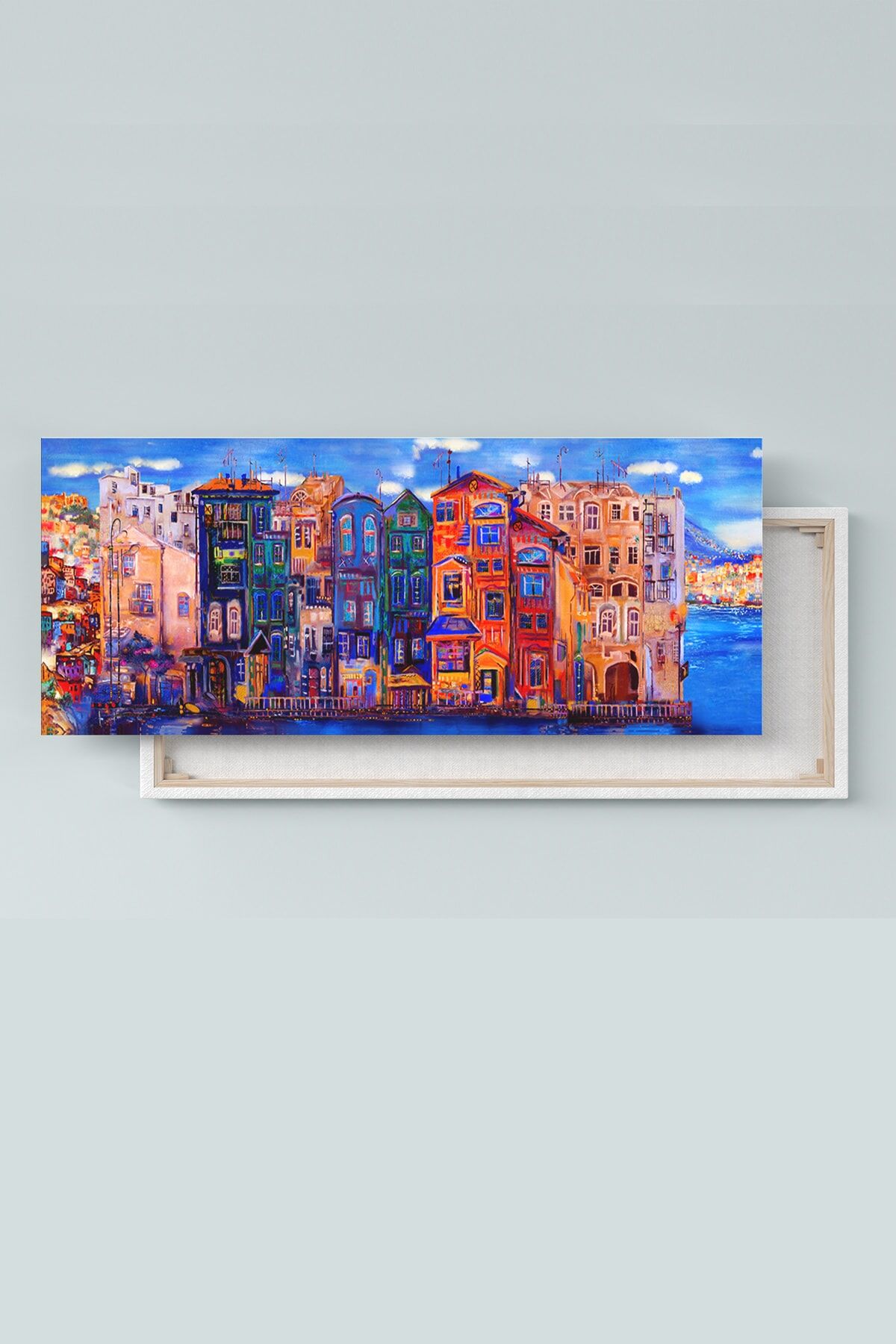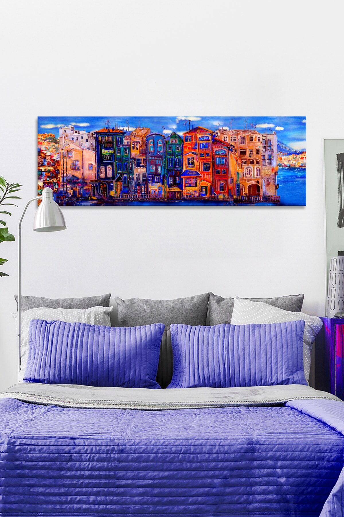 Şehir Yaşam Kasaba Yağlıboya Efektli Dekaratif Kanvas Tablo 7 Farklı Ölçü