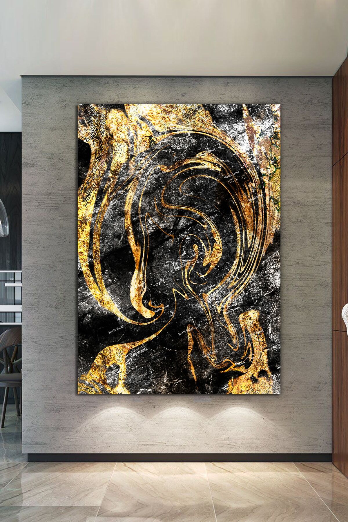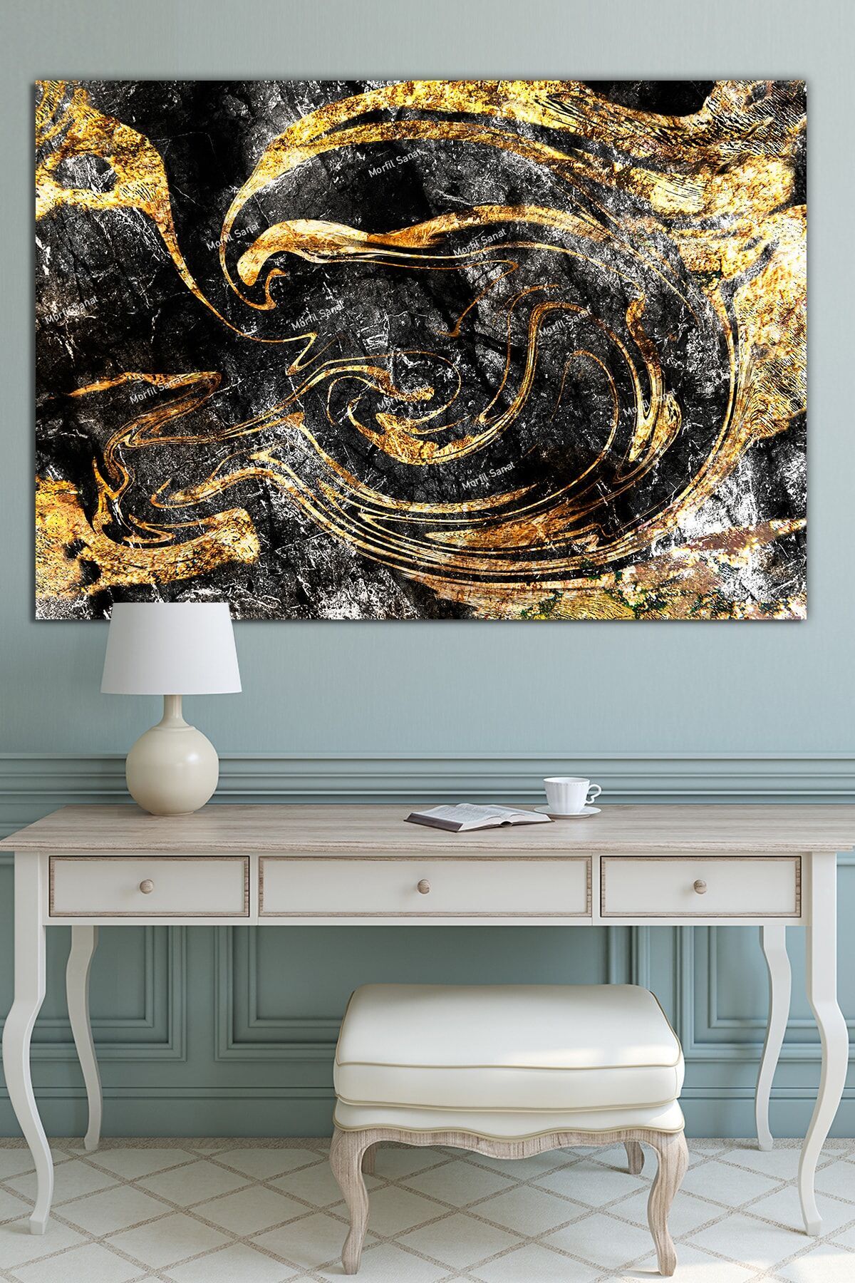 Siyah Altın Soyut Sanatsal Dekoratif Kanvas Tablo