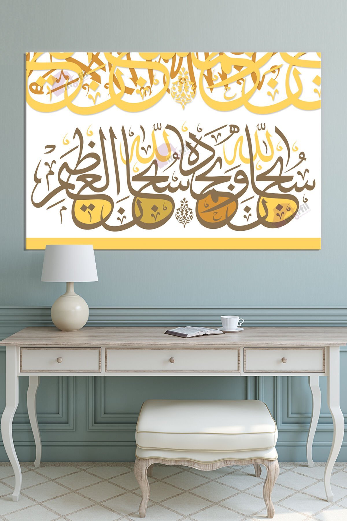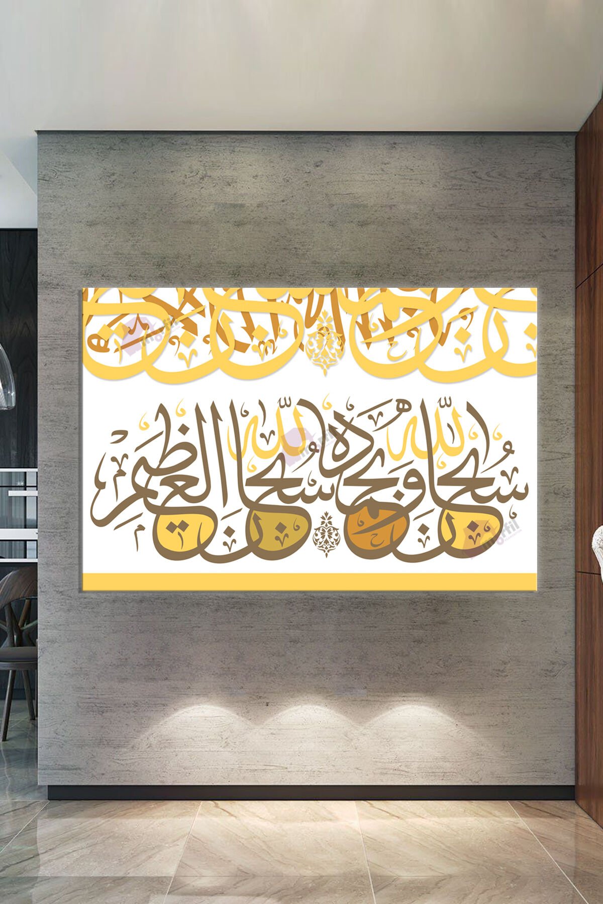 Sübhanallahi ve bihamdihi Subhanallahil Azim İslami Dini Hat Sanatsal Kanvas Tablo (7 Farklı Ölçü)