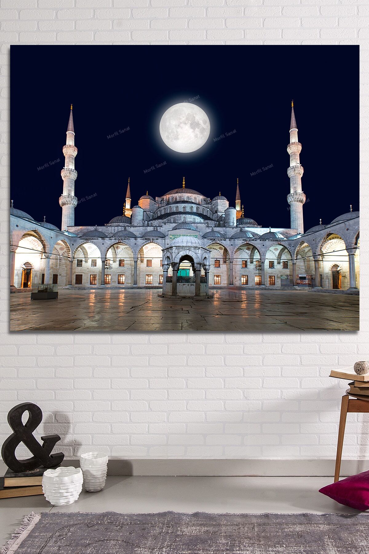 Sultanahmet Camii Gece Ve Ay Kanvas Tablo