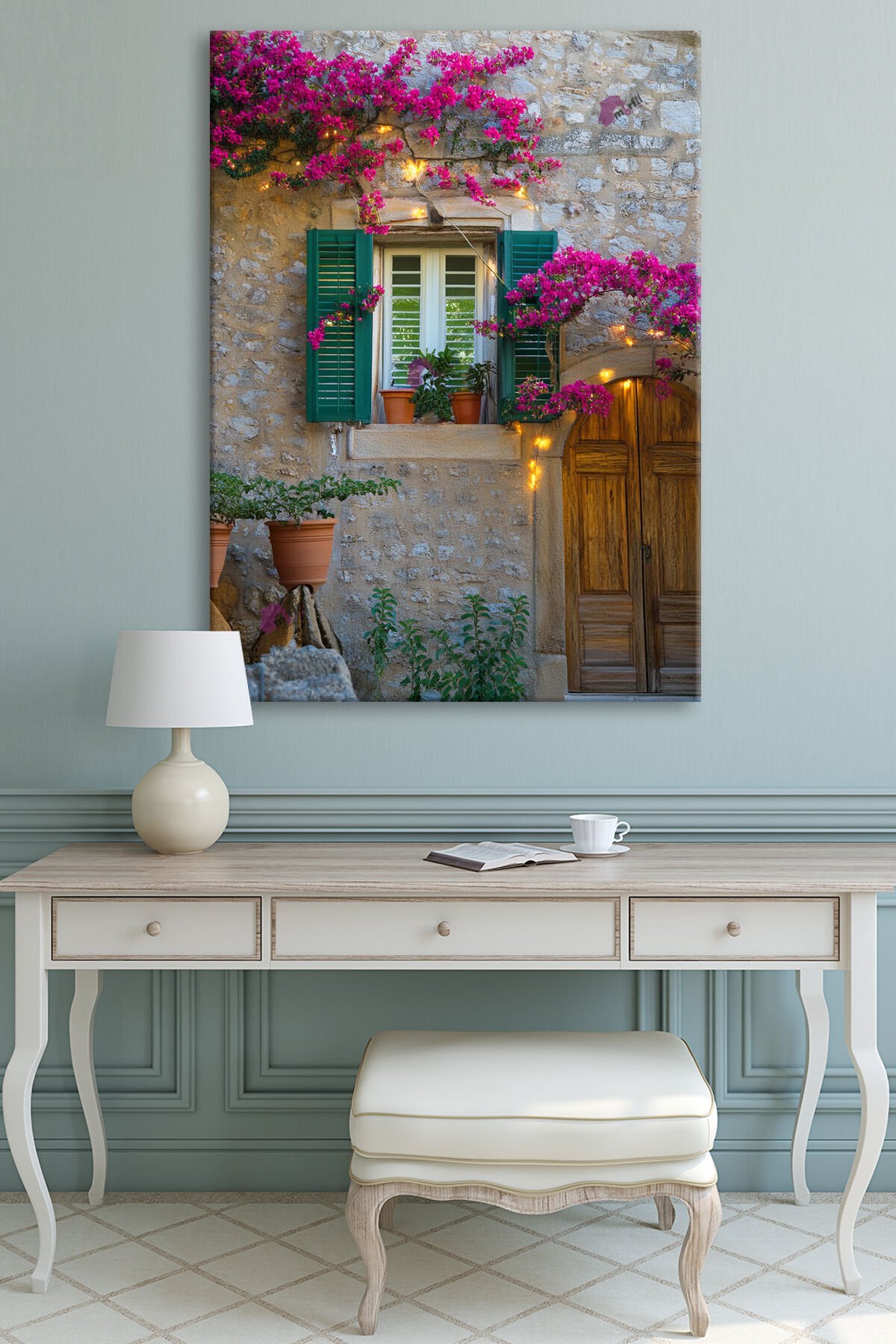 Taş Ev Çiçekli Pencere Kapı Dekoratif Kanvas Tablo