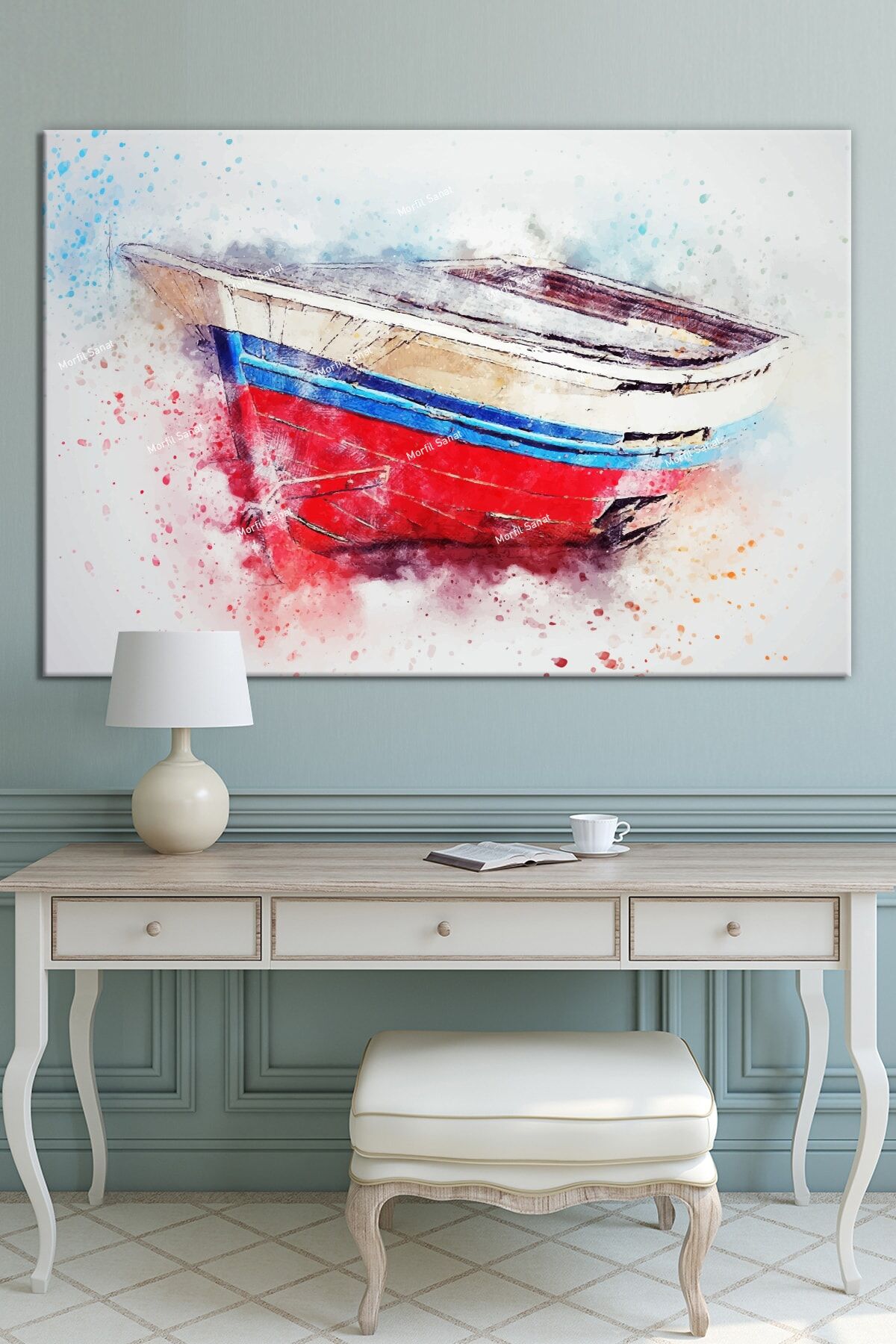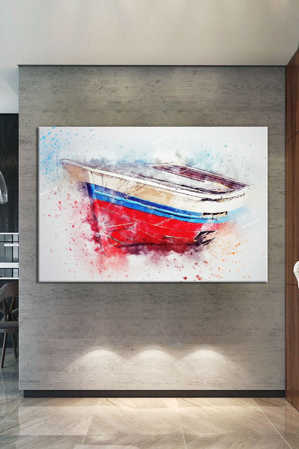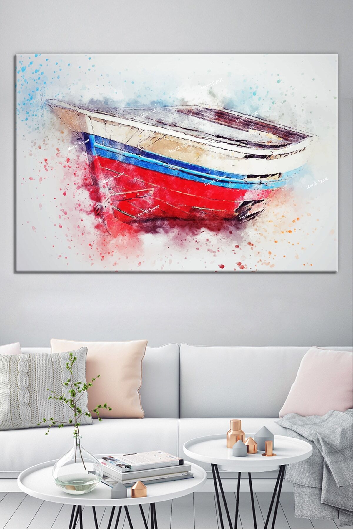 Tekne Kayık Suluboya Efektli Dekoratif Kanvas Tablo (8 Farklı Ölçü)