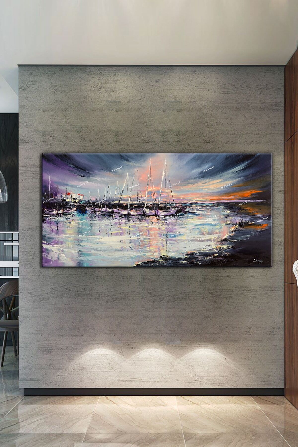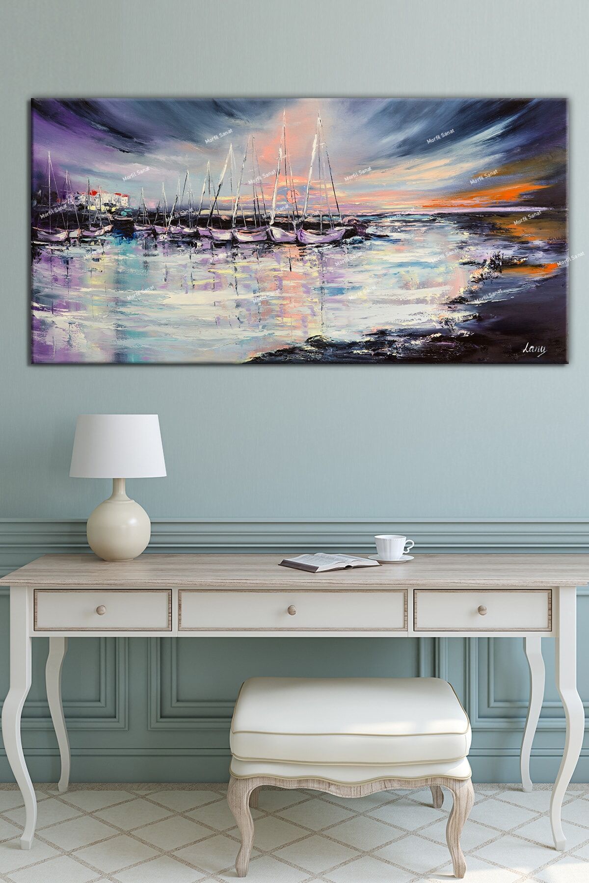 Tekneler Ve Gün Batımı Sanatsal Dekoratif Kanvas Tablo