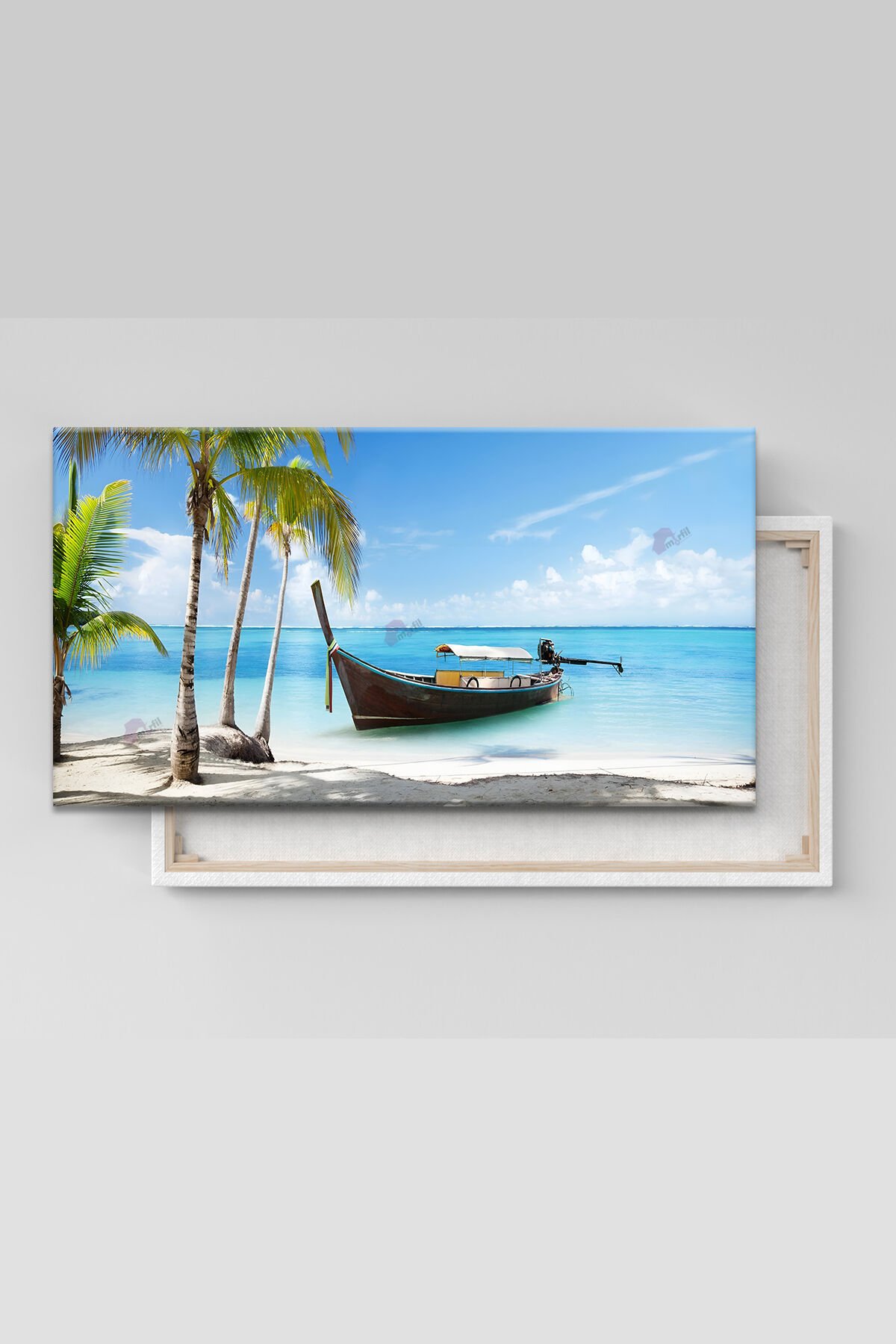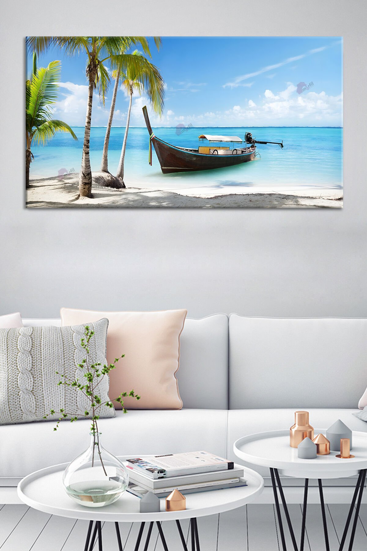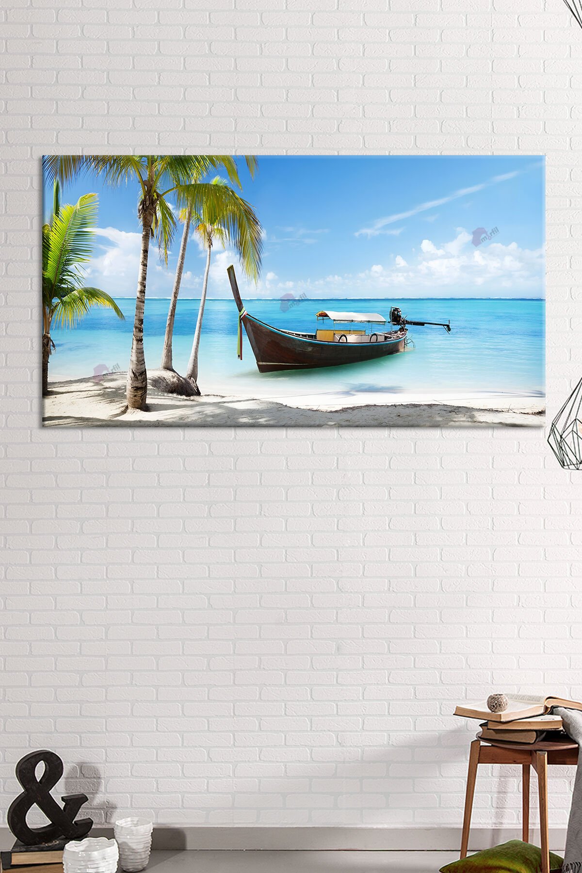 Tropikal Okyanus Sahil Tekne Manzara Kanvas Tablo (6 Farklı Ölçü)