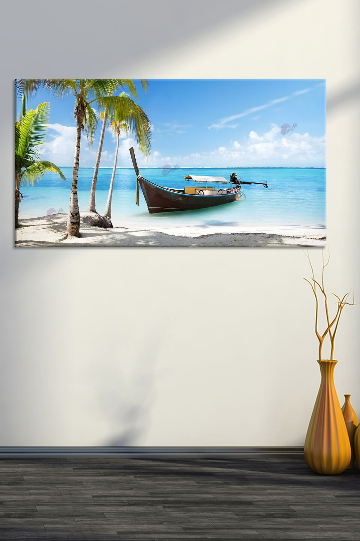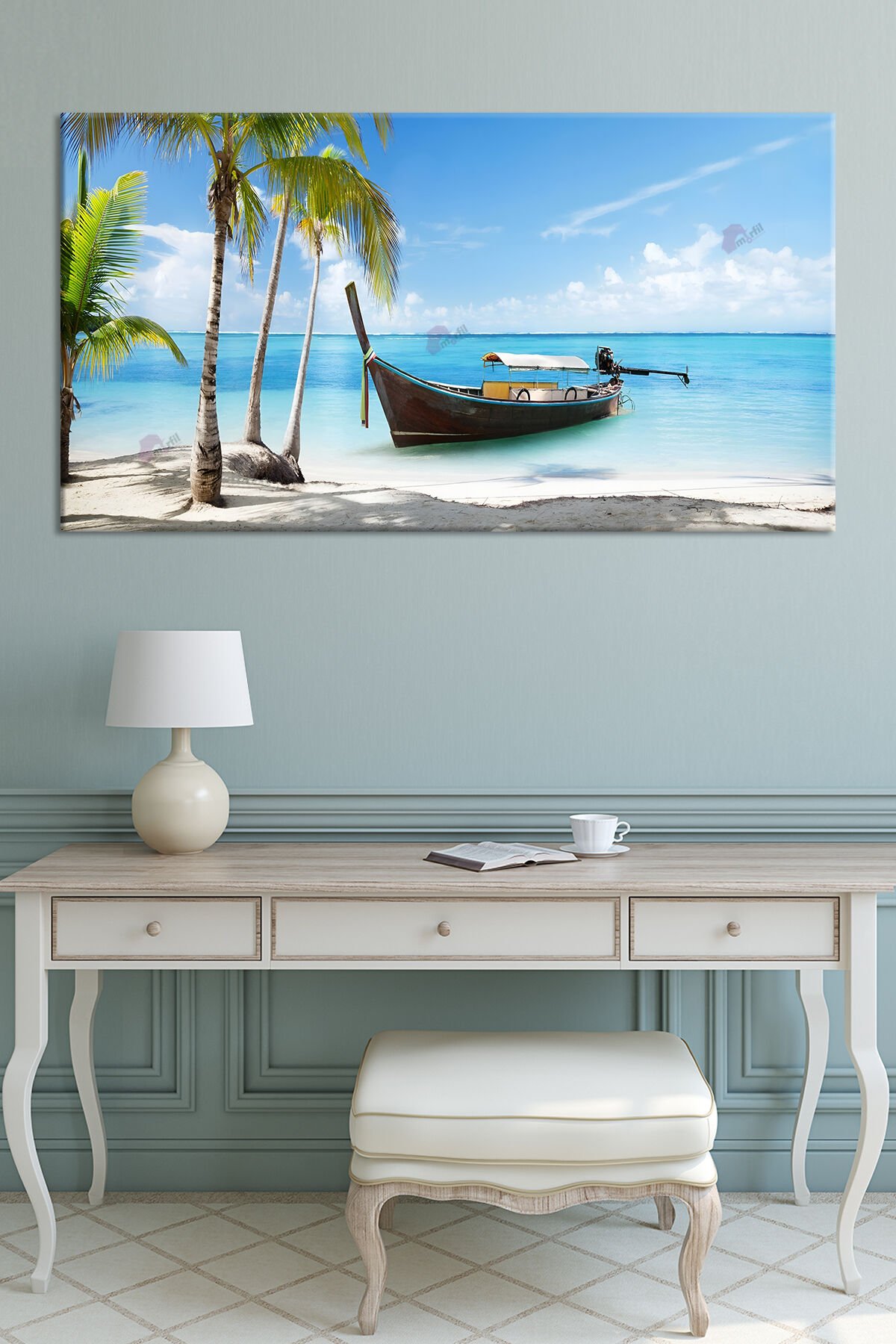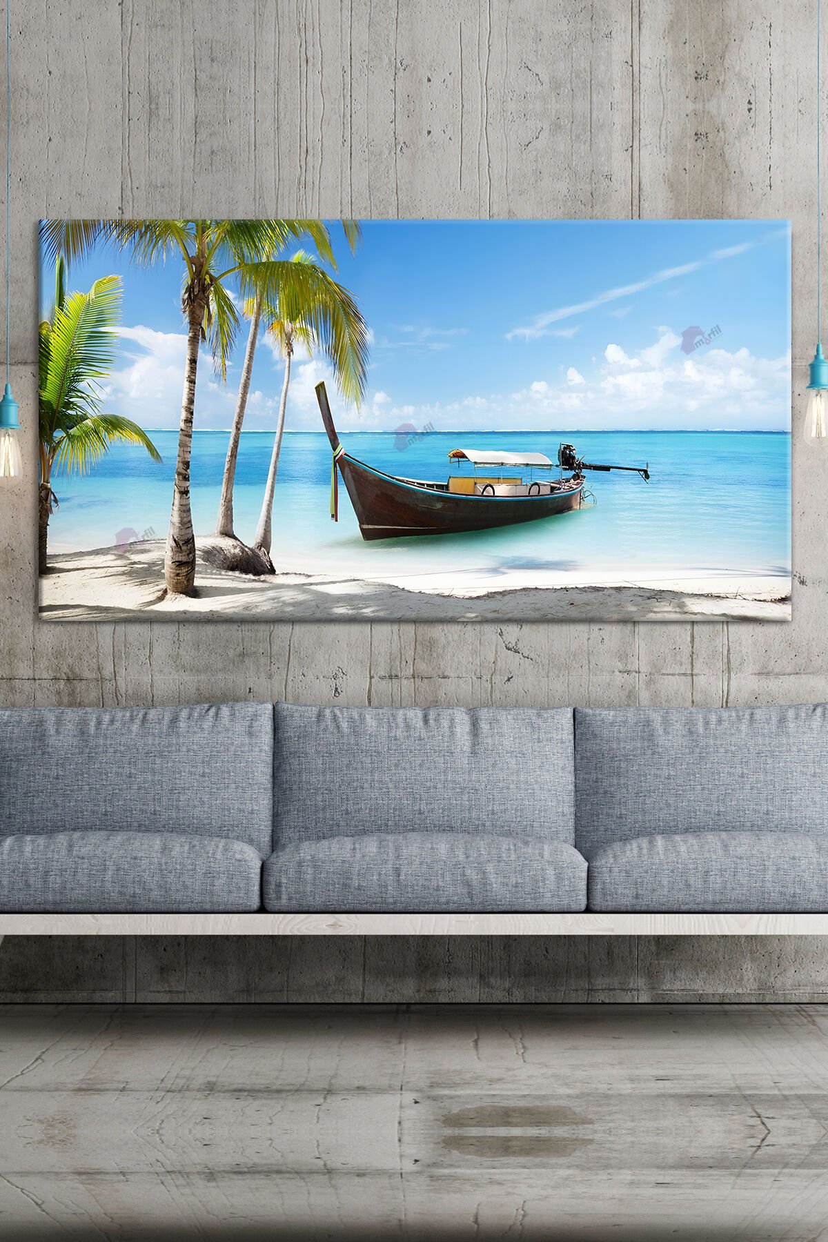 Tropikal Okyanus Sahil Tekne Manzara Kanvas Tablo (6 Farklı Ölçü)
