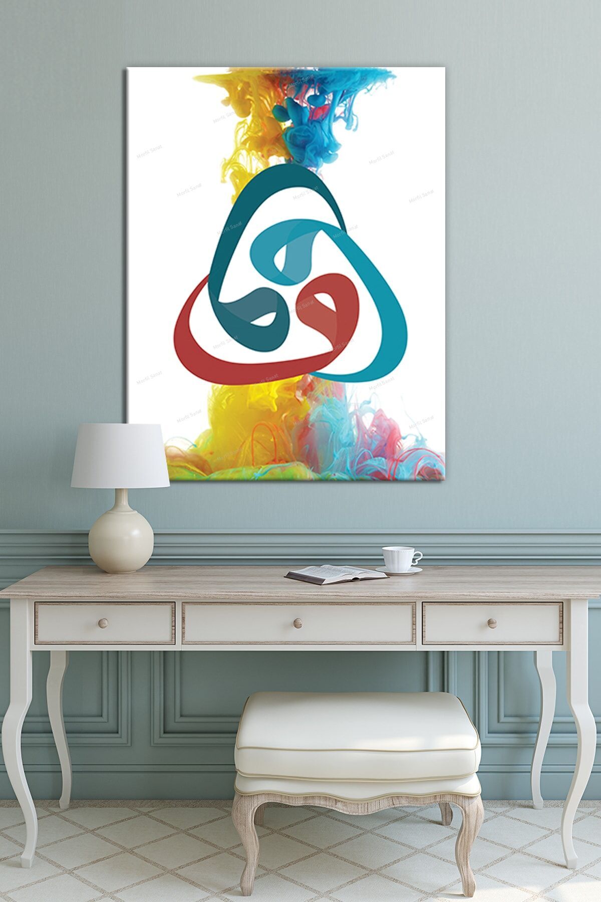 Üçlü Vav Dini Islami Vav Harfi Hat Sanatsal Kanvas Tablo (8 Farklı Ölçü)