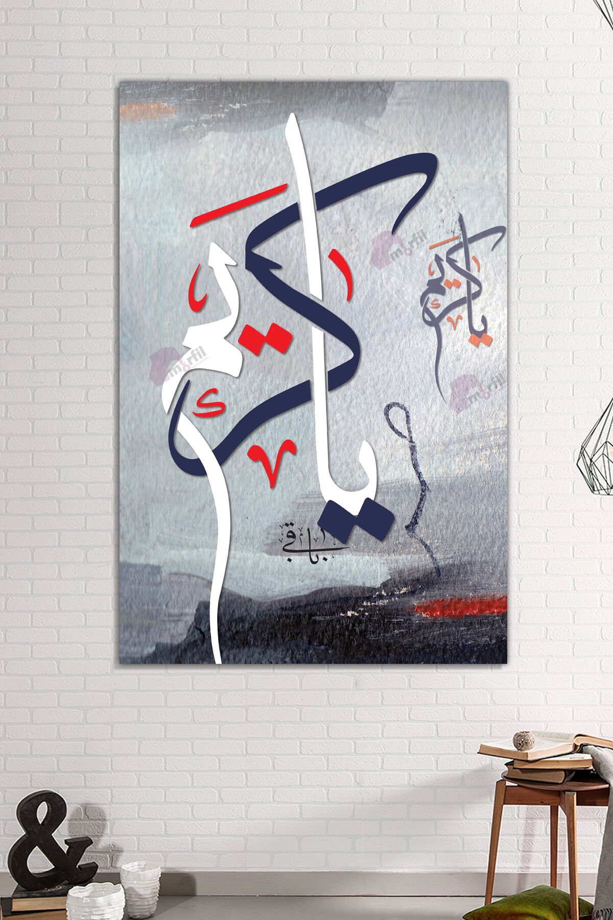 Ya Kerim ( Esma ) Yazılı İslami Dini Hat Sanatsal Kanvas Tablo (7 Farklı Ölçü)