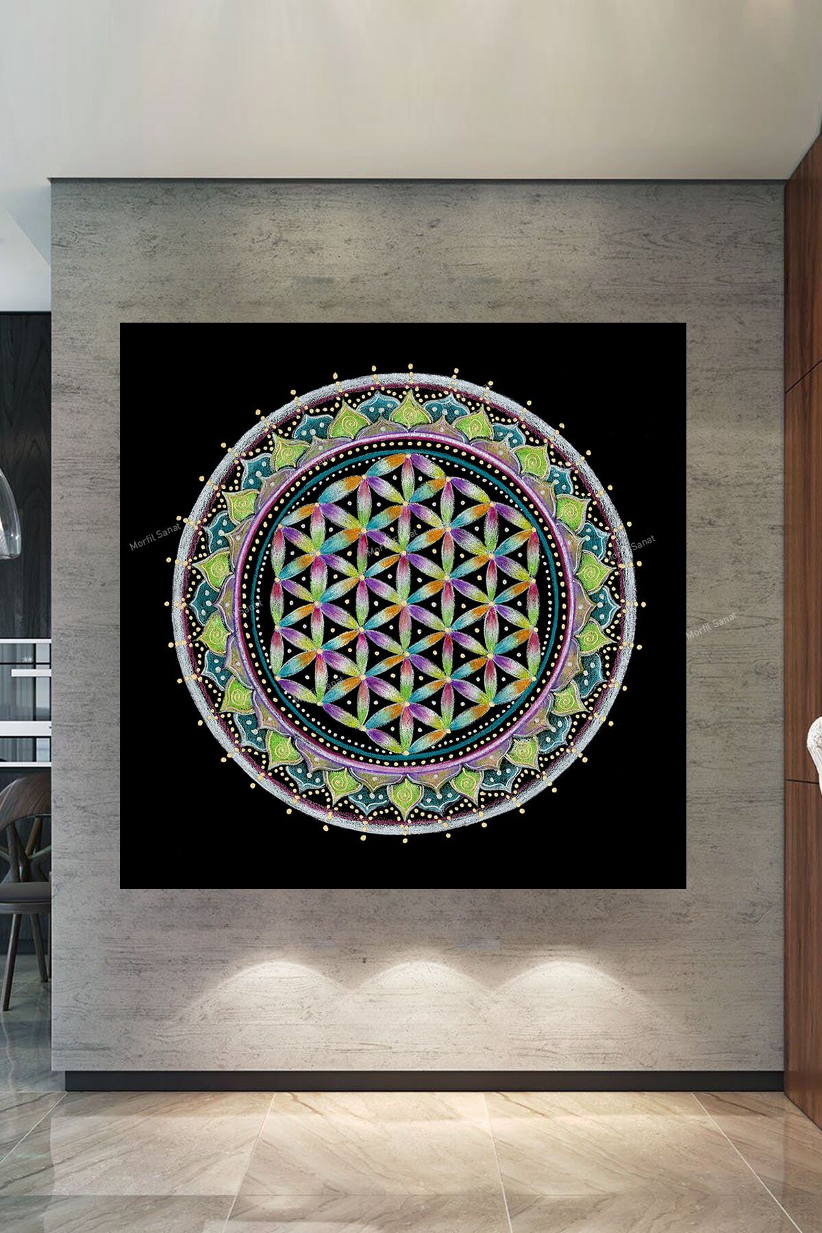 Yaşam Çiçeği Kutsal Geometri Sri Yantra Kanvas Tablo