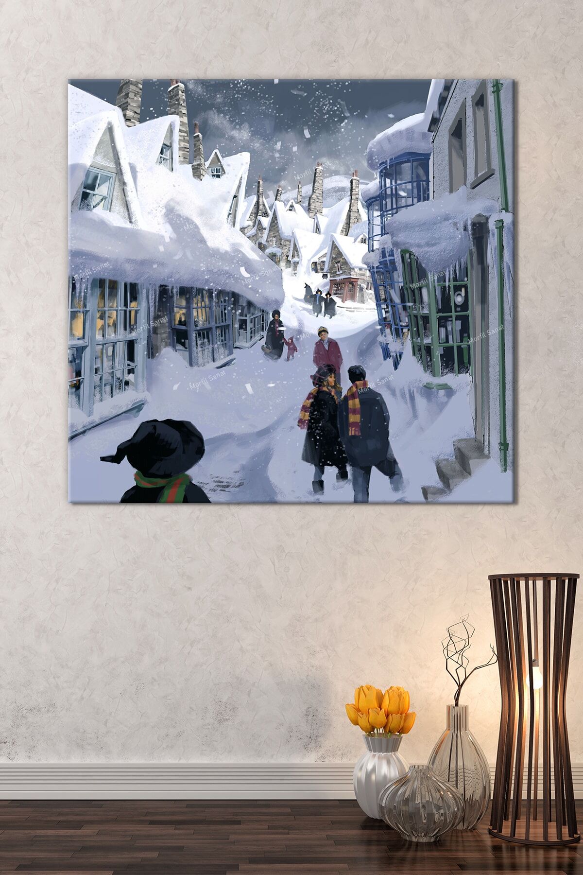 Yeni Yıl New Year Yılbaşı Kış Suluboya Efektli Dekoratif Kanvas Tablo (7 Farklı Ölçü)