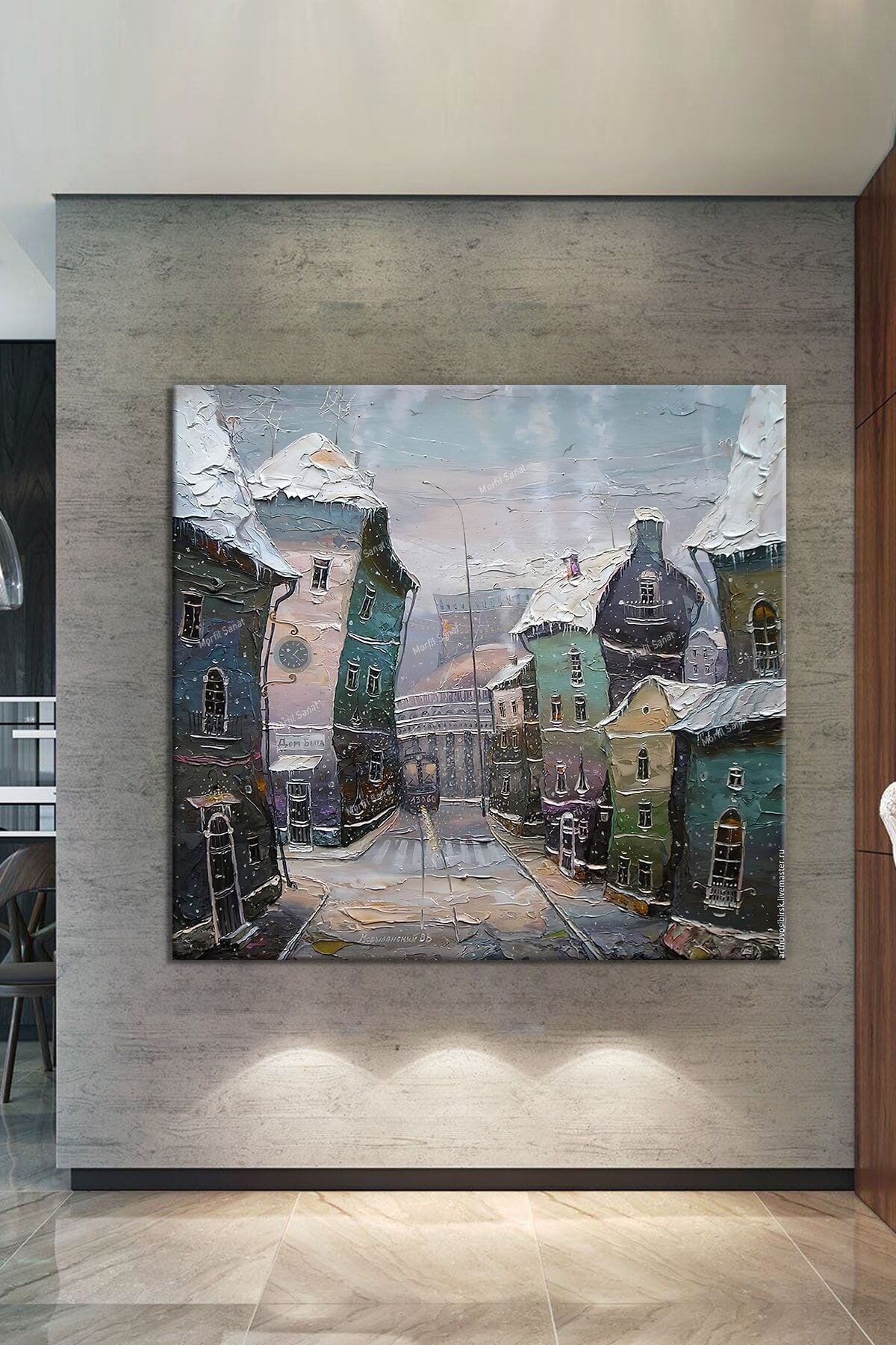 Yeni Yıl New Year Yılbaşı Kış Suluboya Efektli Dekoratif Kanvas Tablo (8 Farklı Ölçü)