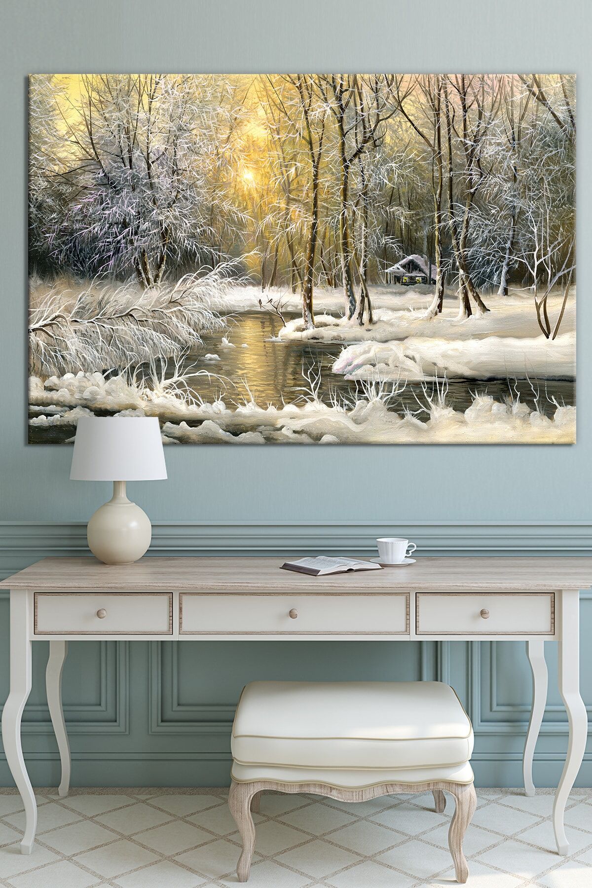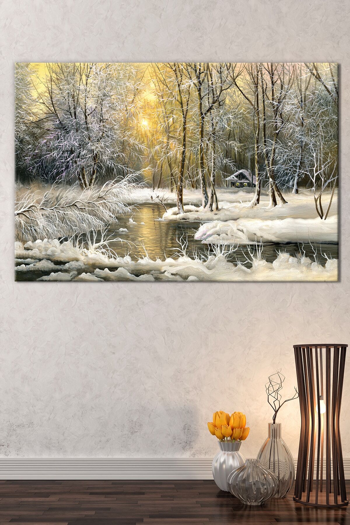 Yeni Yıl New Year Yılbaşı Kış Yağlıboya Efektli Doğa Manzara Dekoratif Kanvas Tablo