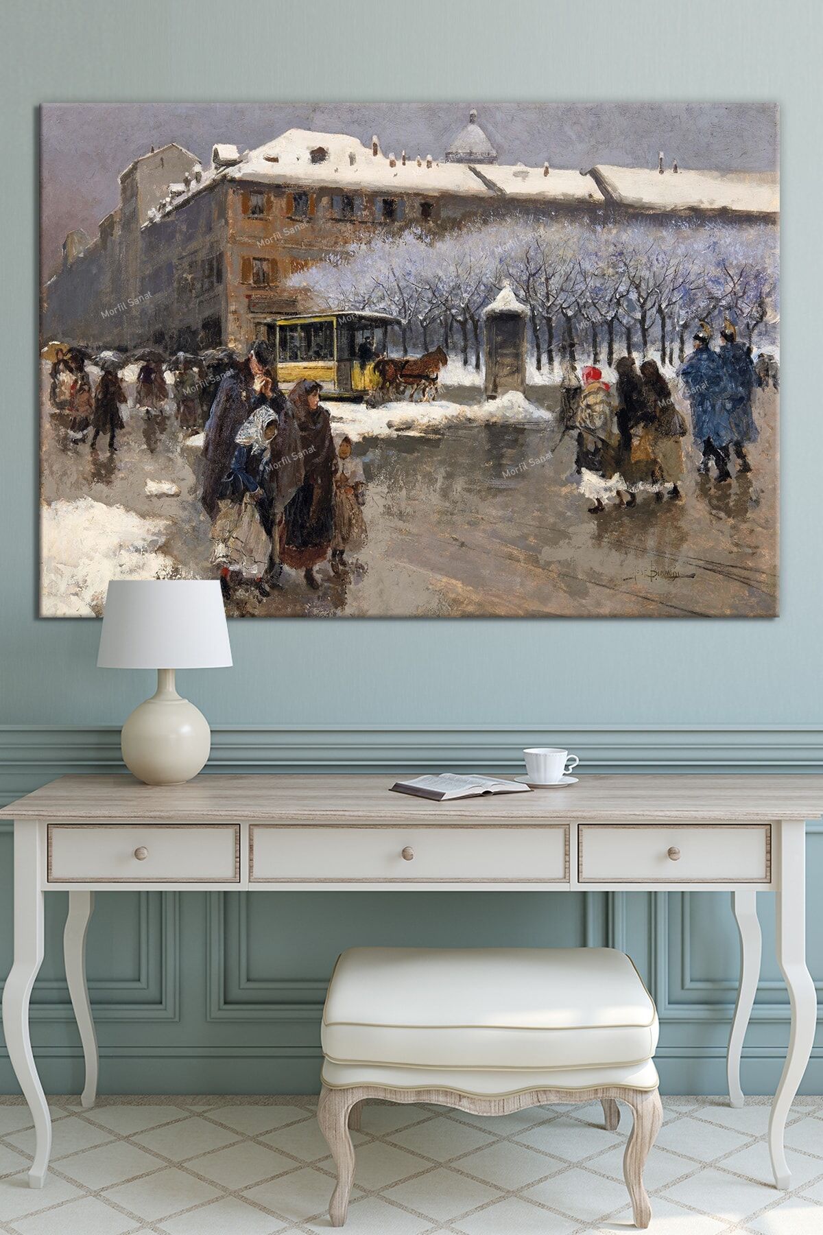 Yeni Yıl New Year Yılbaşı Kış Yağlıboya Efektli Doğa Manzara Dekoratif Kanvas Tablo (8 Farklı Ölçü)